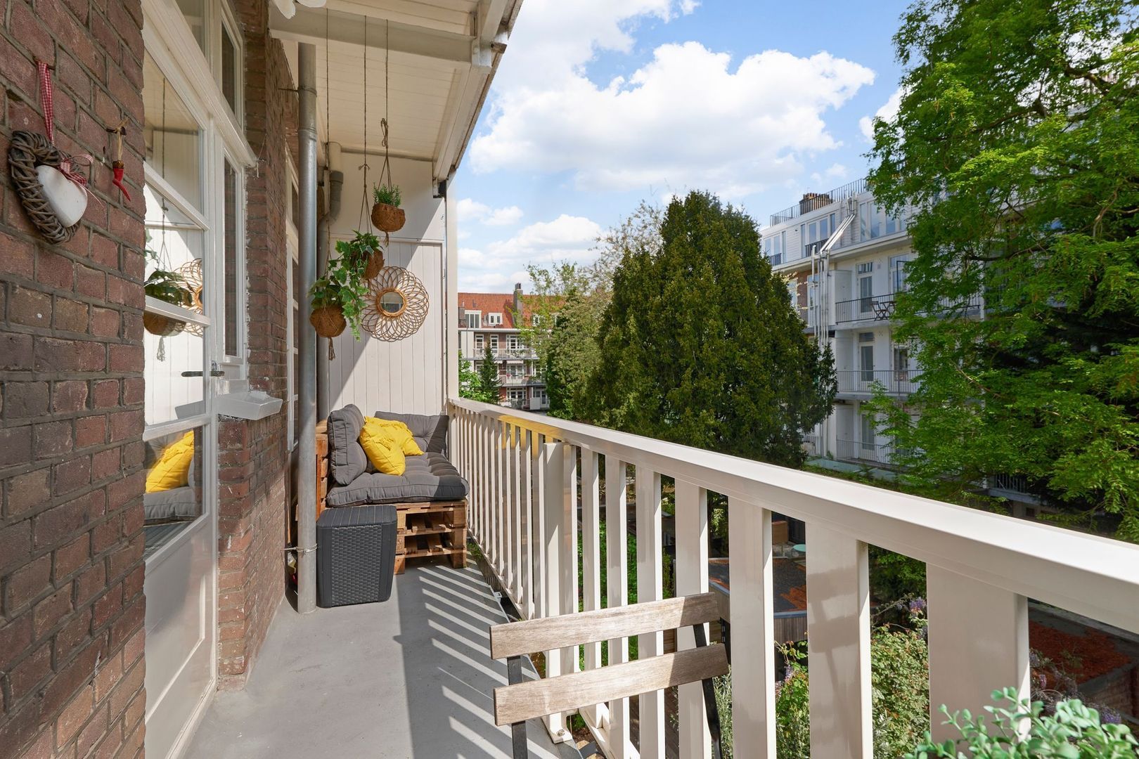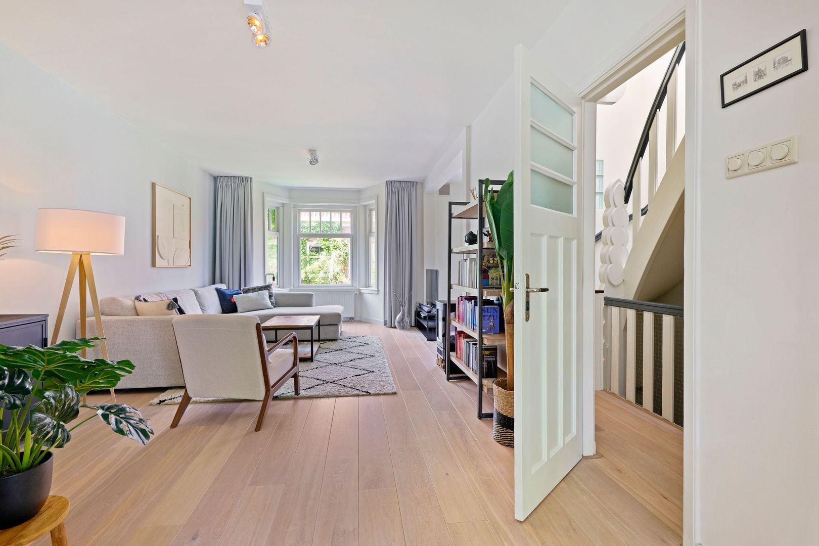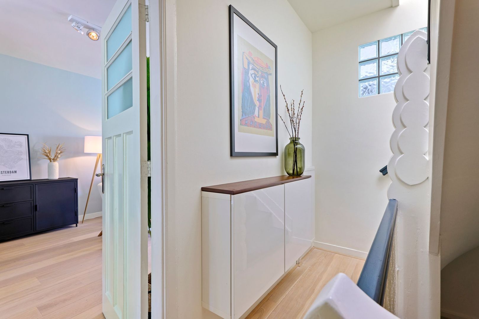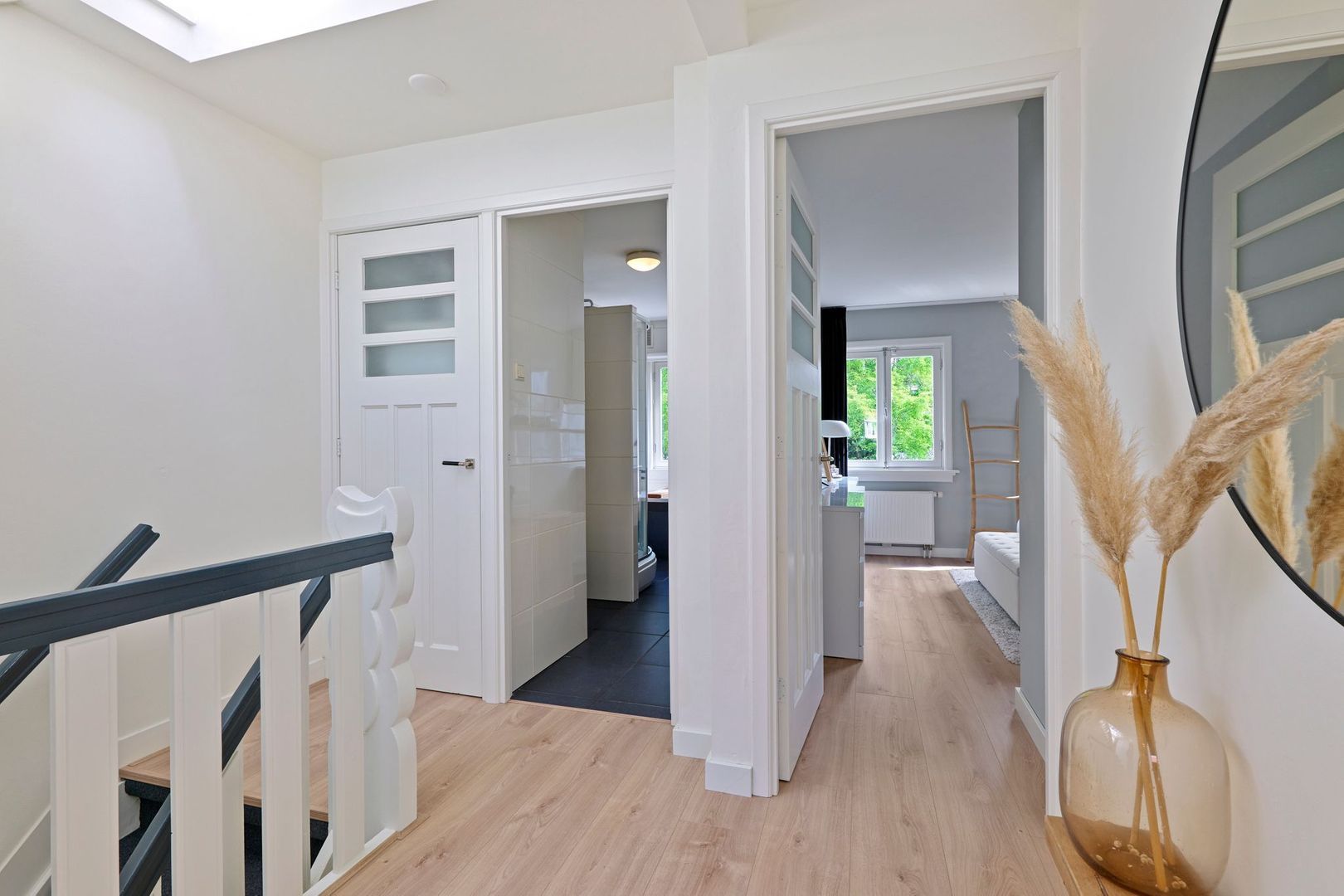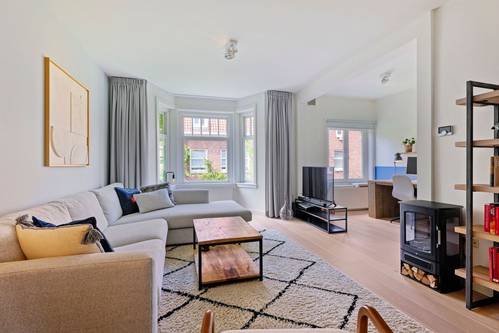 This fantastic upper-level home is part of a building constructed in 1930 and spans the second and third floors, with a generous rooftop terrace. Upon entry, you are immediately struck by the tranquility and serenity that permeates the entire property. Noteworthy features include the spacious living room with bay window and adjoining balcony, as well as the sunny rooftop terrace of over 30m². The kitchen and sanitary facilities are finished in a modern style. If desired, a fourth bedroom can be created with relative ease. The combination of the perfect layout, original details, and location makes this a truly special upper-level home.