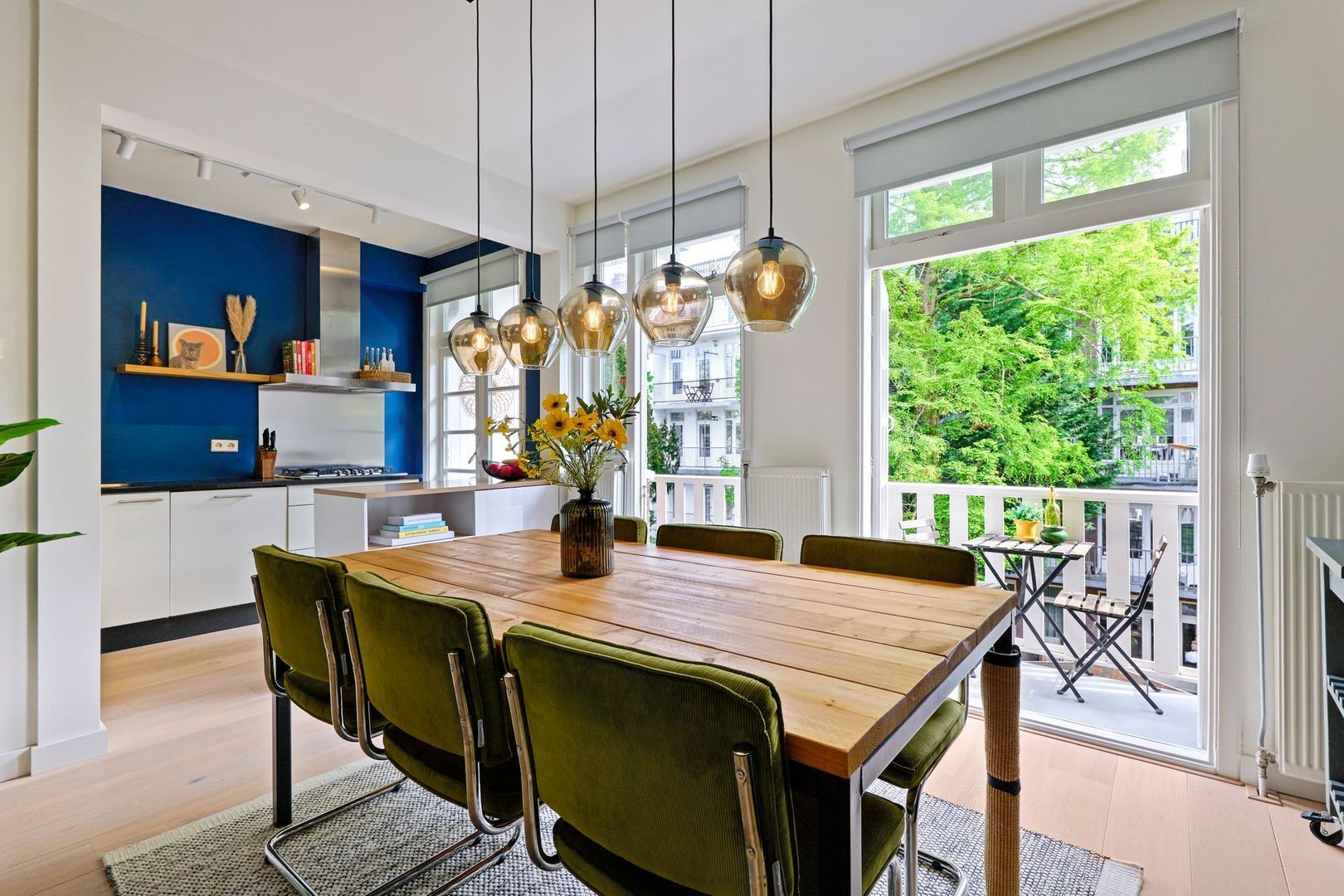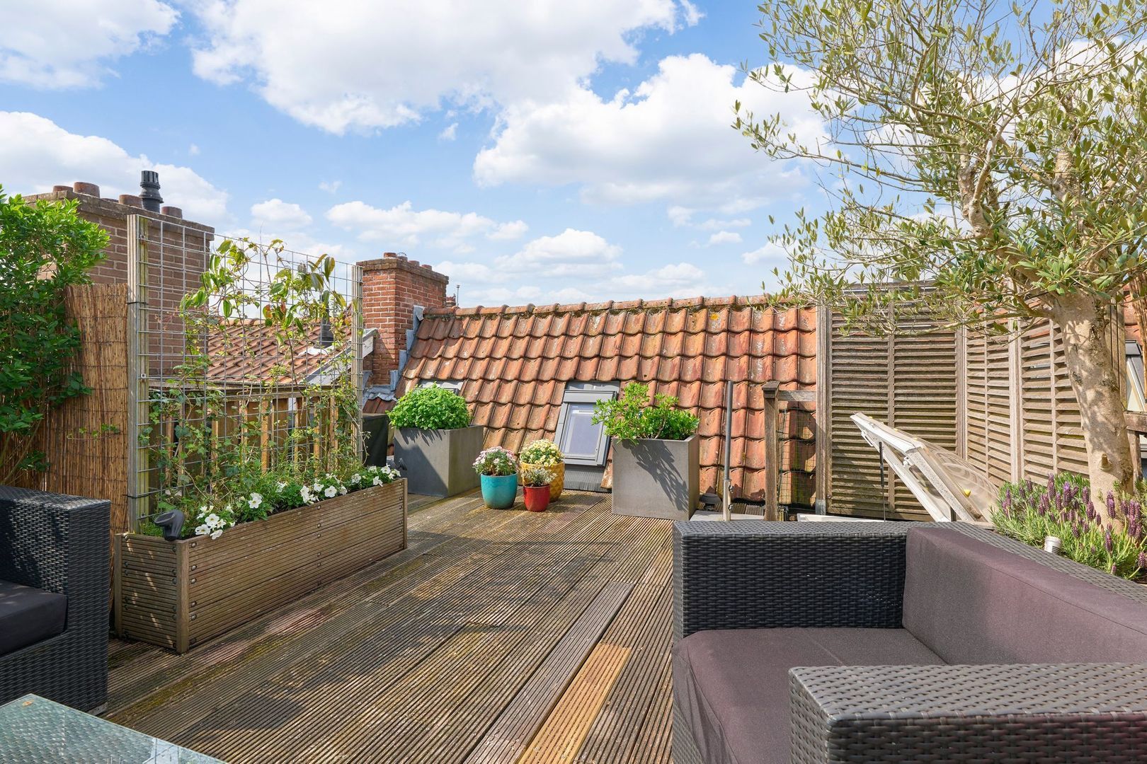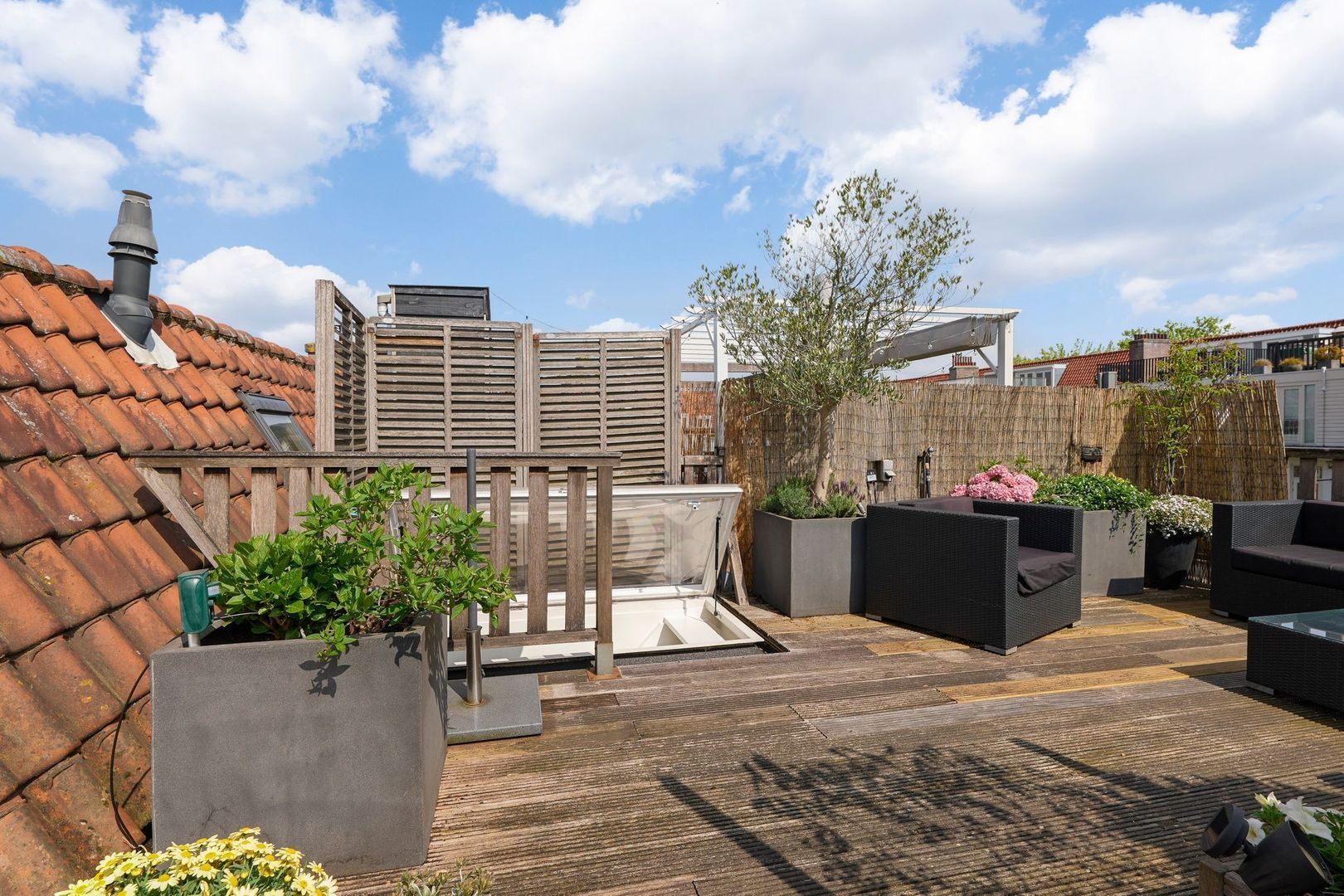 Atmospheric, modern and exceptionally bright double upper-level apartment of 131m² (gross floor area 152m²) with its own private entrance from the street. This upper apartment features a spacious living area with open kitchen and balcony, three bedrooms, and a sunny rooftop terrace with a high degree of privacy. The property is located in the charming Stadionbuurt, with all amenities within easy reach.