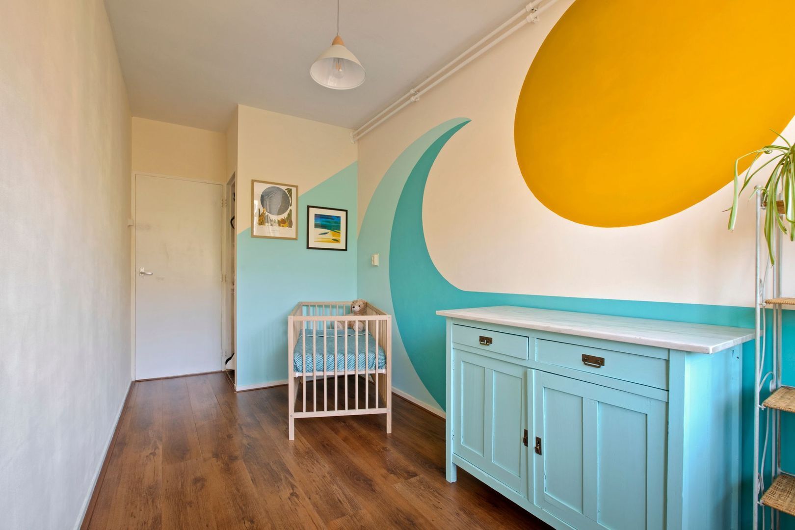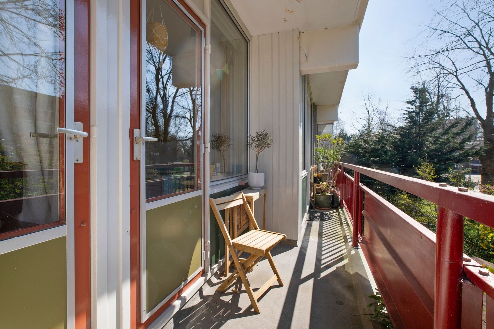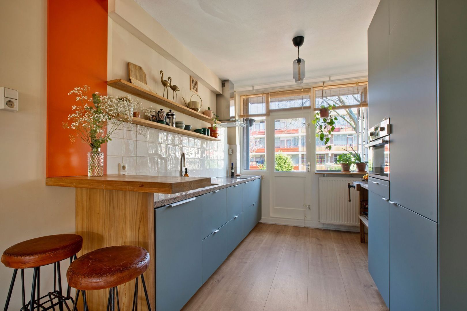 LAYOUT Through the spacious closed porch and the large communal stairwell, you reach the entrance on the first floor. Upon entering, you immediately step into the living room, which is wonderfully bright due to the large windows on both sides. The living room has access to a balcony facing the sunny west, which runs along the entire rear of the apartment. The open kitchen is located at the front and was renovated in 2022, featuring a granite countertop with green cabinet fronts and modern built-in appliances, including a Quooker, an oven, and a 4-burner induction cooktop. From the kitchen, there is access to a small balcony at the front of the apartment.
