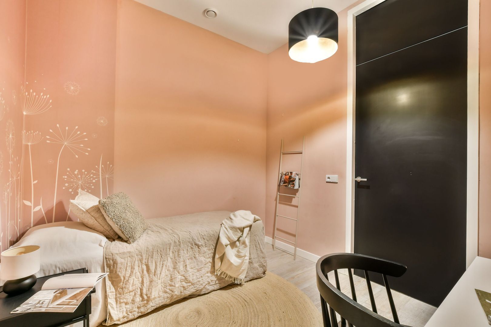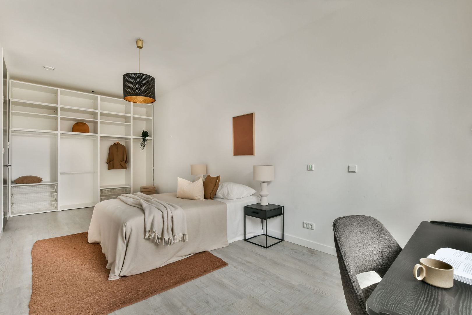 The two main bedrooms are situated on the Benjamin Brittenstraat side. The left-hand bedroom is particularly spacious, while the right-hand room is currently used as an office. The third bedroom is located in the center of the apartment.