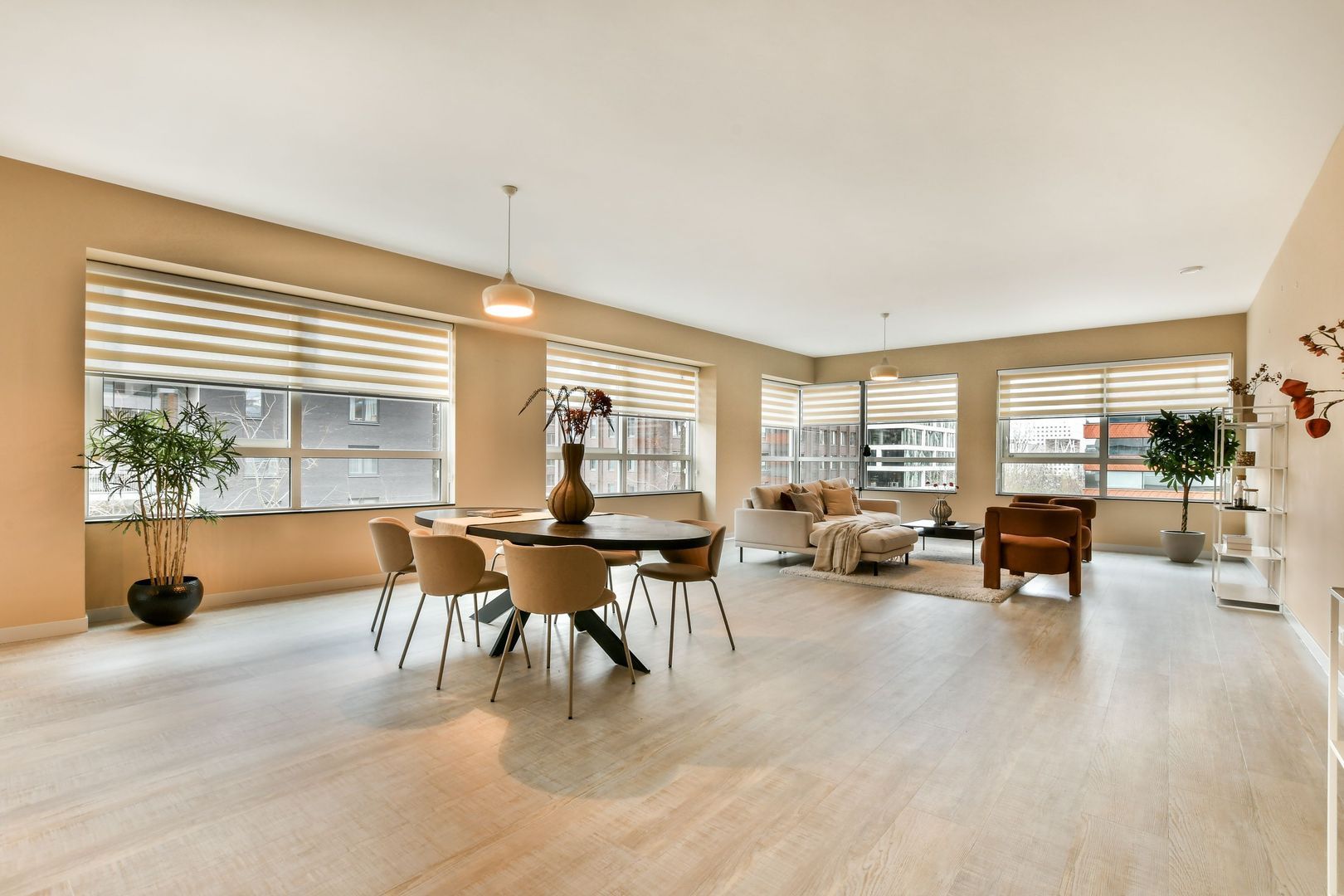 Exceptionally bright and modern four-foom apartment of 174m² (Gross Floor Area 186m²) featuring high ceilings, a spacious living area, three bedrooms, two bathrooms, and fantastic natural light. The apartment is located on the third floor of the luxurious “New Amsterdam” building in the Zuidas district and includes an elevator and a private storage unit in the basement.