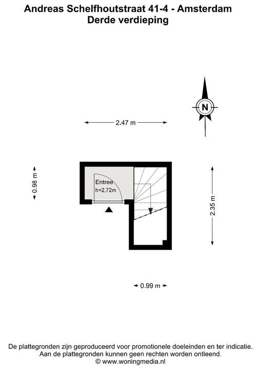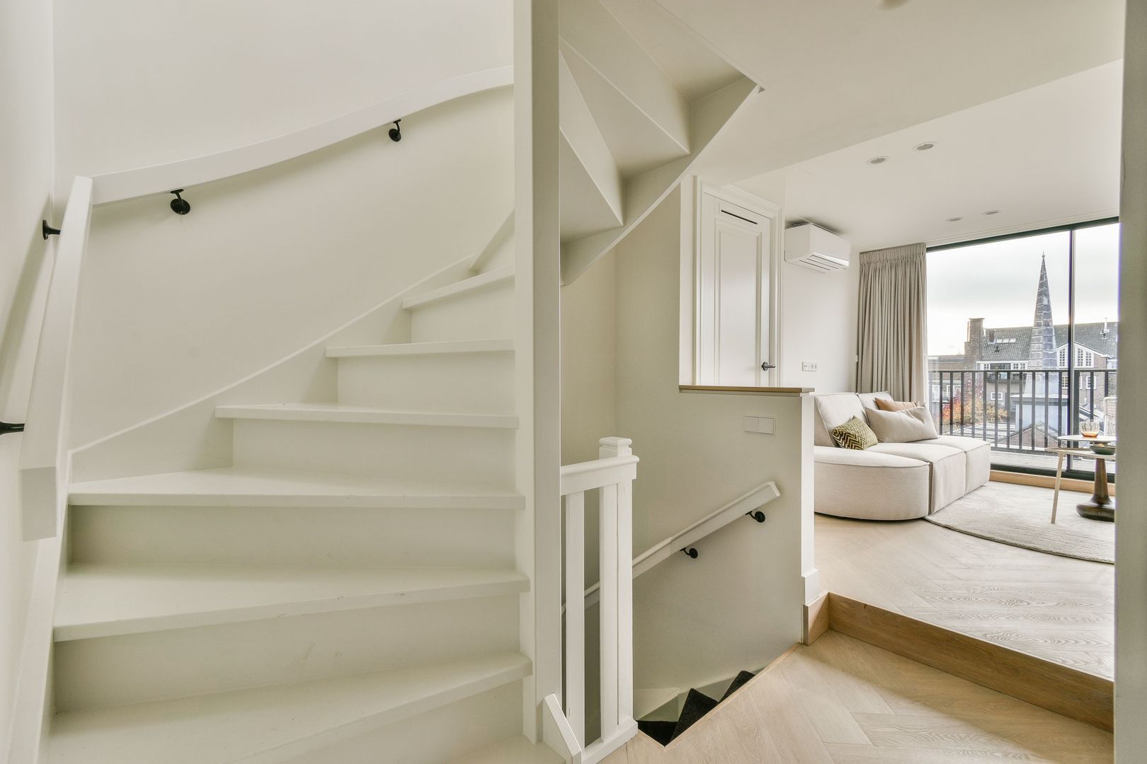 Via de centrale entree leidt het gestoffeerde trappenhuis naar de derde verdieping waar zich de toegang tot dit appartement bevindt. De compacte hal biedt plaats voor een garderobe en heeft een interne gestoffeerde trap naar de vierde verdieping. De overloop biedt toegang tot alle ruimtes en heeft een houten trap naar bovengelegen kapverdieping.