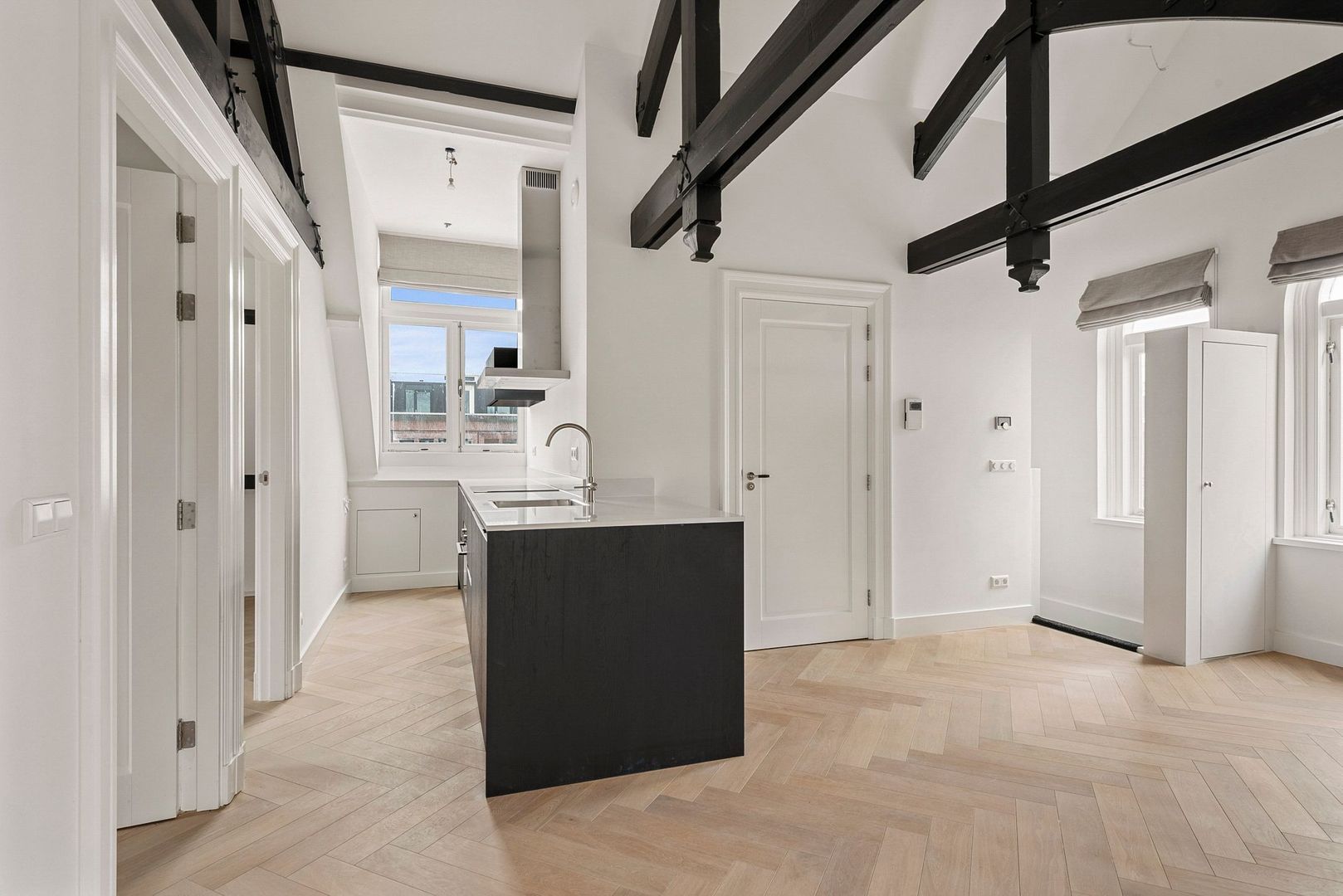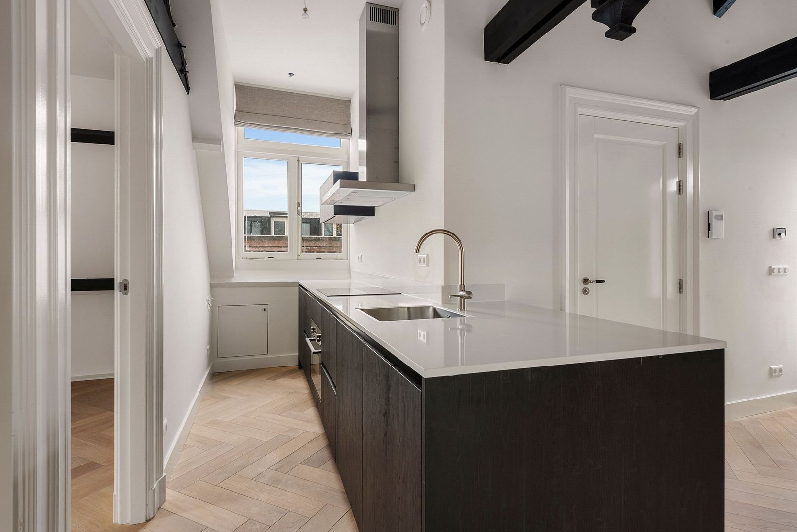 Het geheel is met oog voor detail en hoogwaardige materialen afgewerkt. Op de vloer ligt een fraaie visgraat lamelparket met vloerverwarming, tevens is het hele appartement voorzien van inbouwspots.