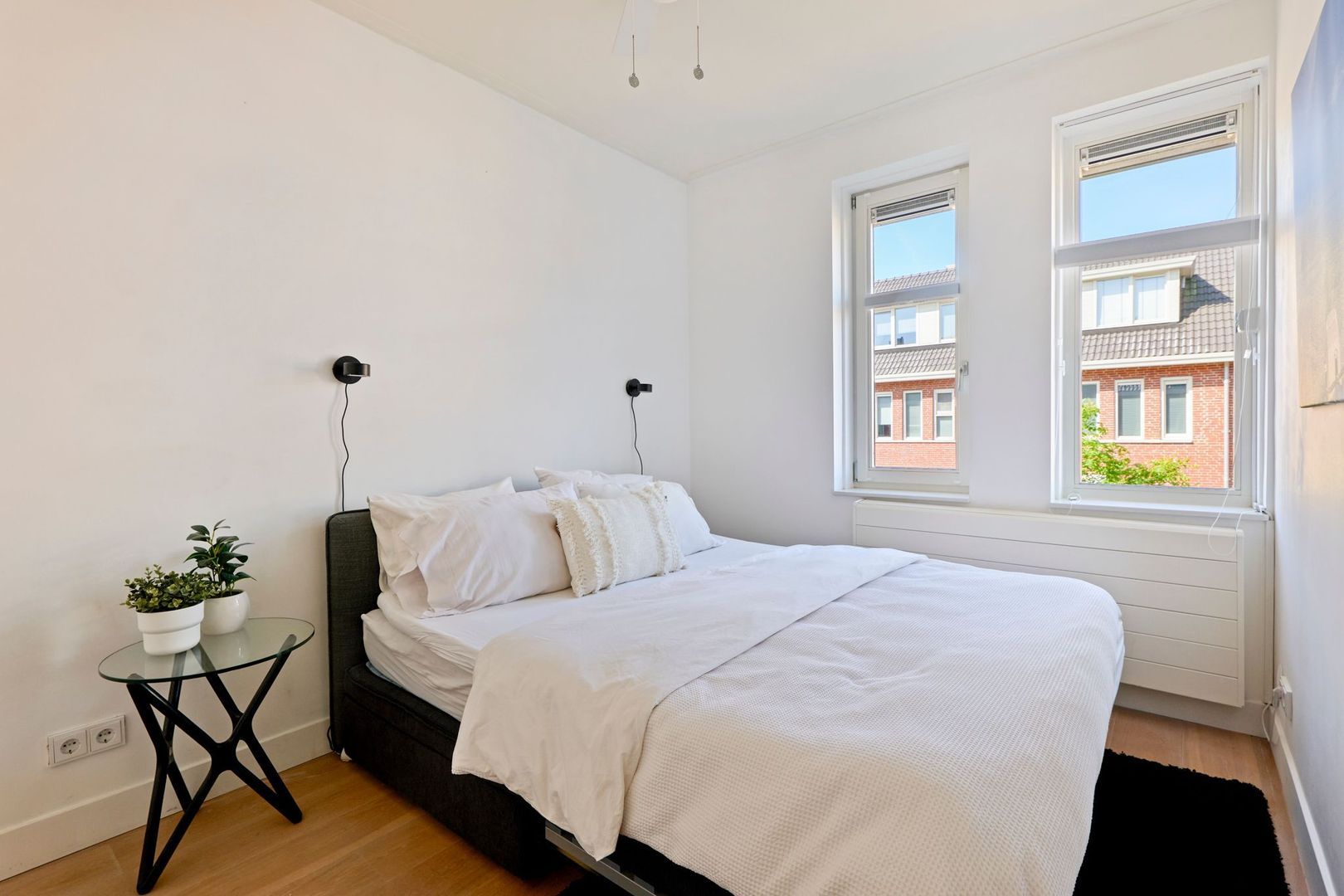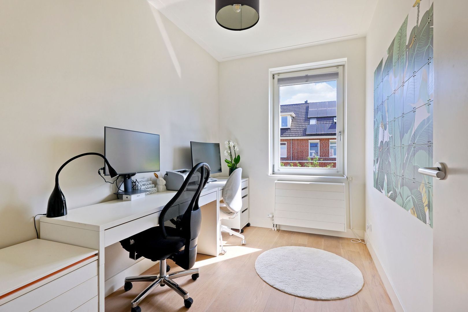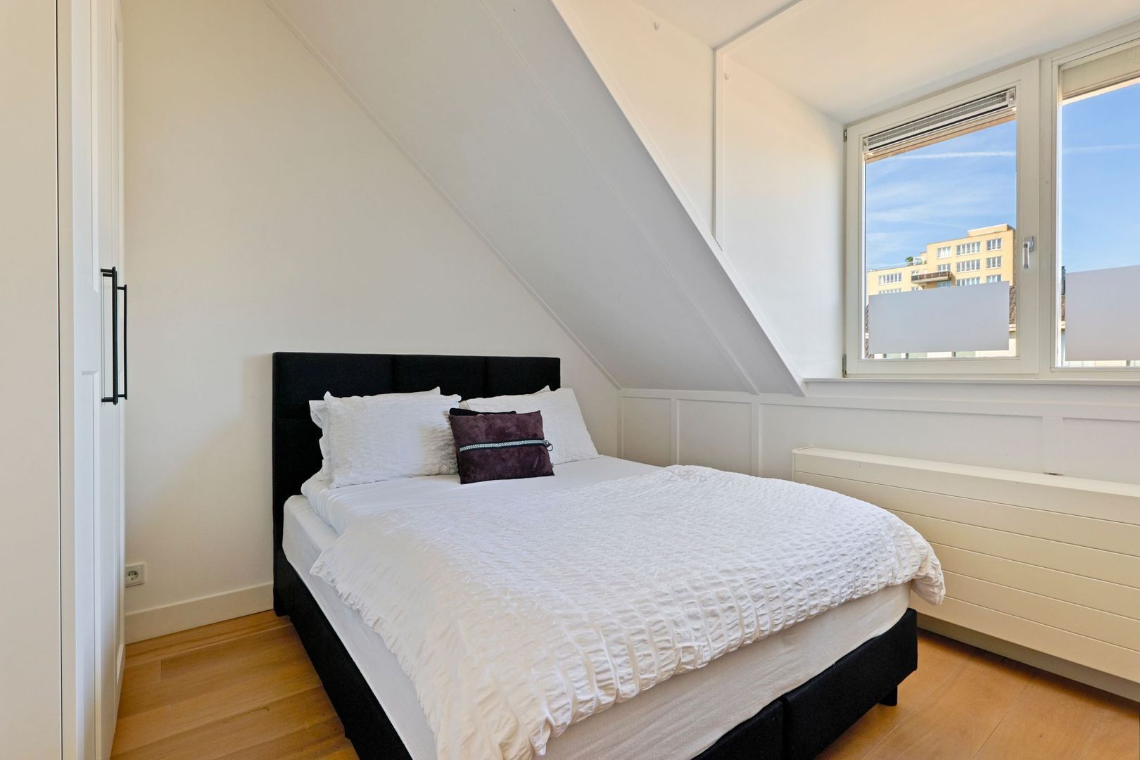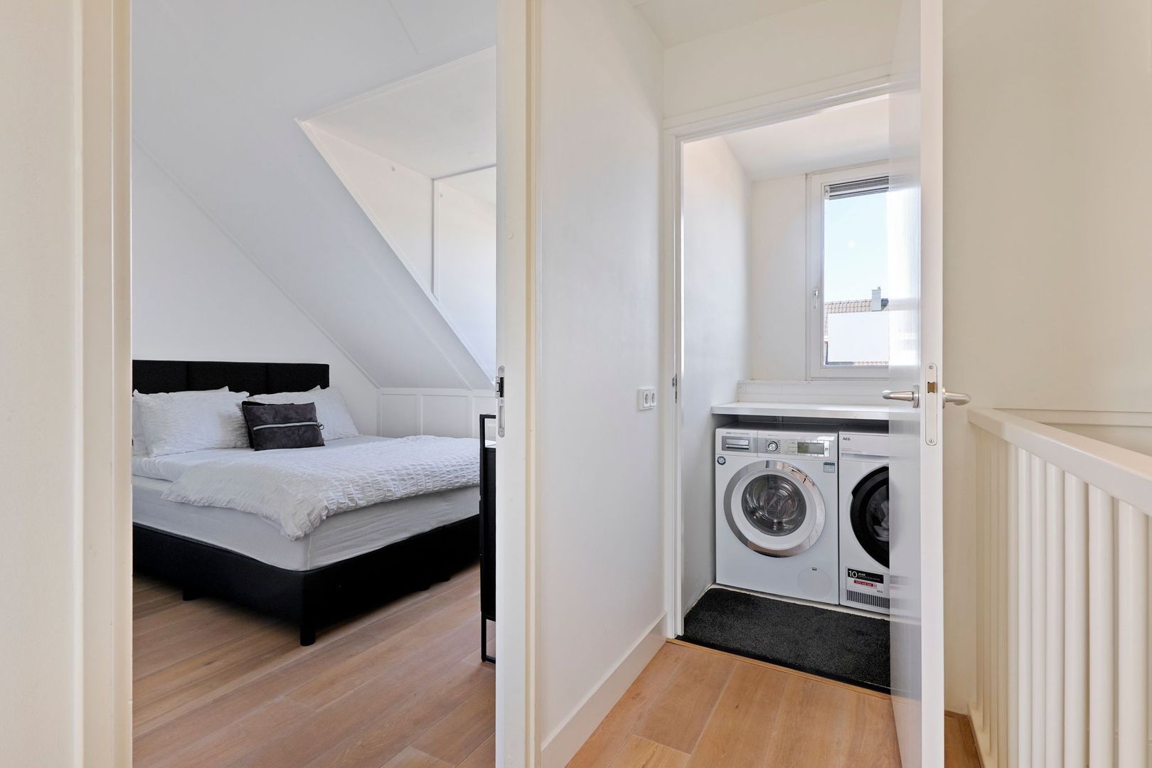 De tweede verdieping biedt nog eens twee slaapkamers en een tweede badkamer, alle bereikbaar via de overloop. De slaapkamer aan de achterzijde beschikt over een dakraam en airconditioning. De slaapkamer aan de voorzijde beschikt over een brede dakkapel en is ook voorzien van airconditioning. De moderne badkamer is uitgevoerd met een witte tegel en beschikt over een inloopdouche met glazen wand hand- en stortdouche, zwevend toilet, en een wastafel in houtlook. Ook deze badkamer beschikt over een (dak)raam wat wederom zorgt voor natuurlijk daglicht en extra ventilatie. Via de overloop is de wasruimte te bereiken, voorzien van de benodigde aansluitingen en de cv-installatie. De vlizotrap vanaf de overloop geeft toegang tot een extra bergzolder in de nok van het huis. Ideaal voor koffers of seizoensopslag.