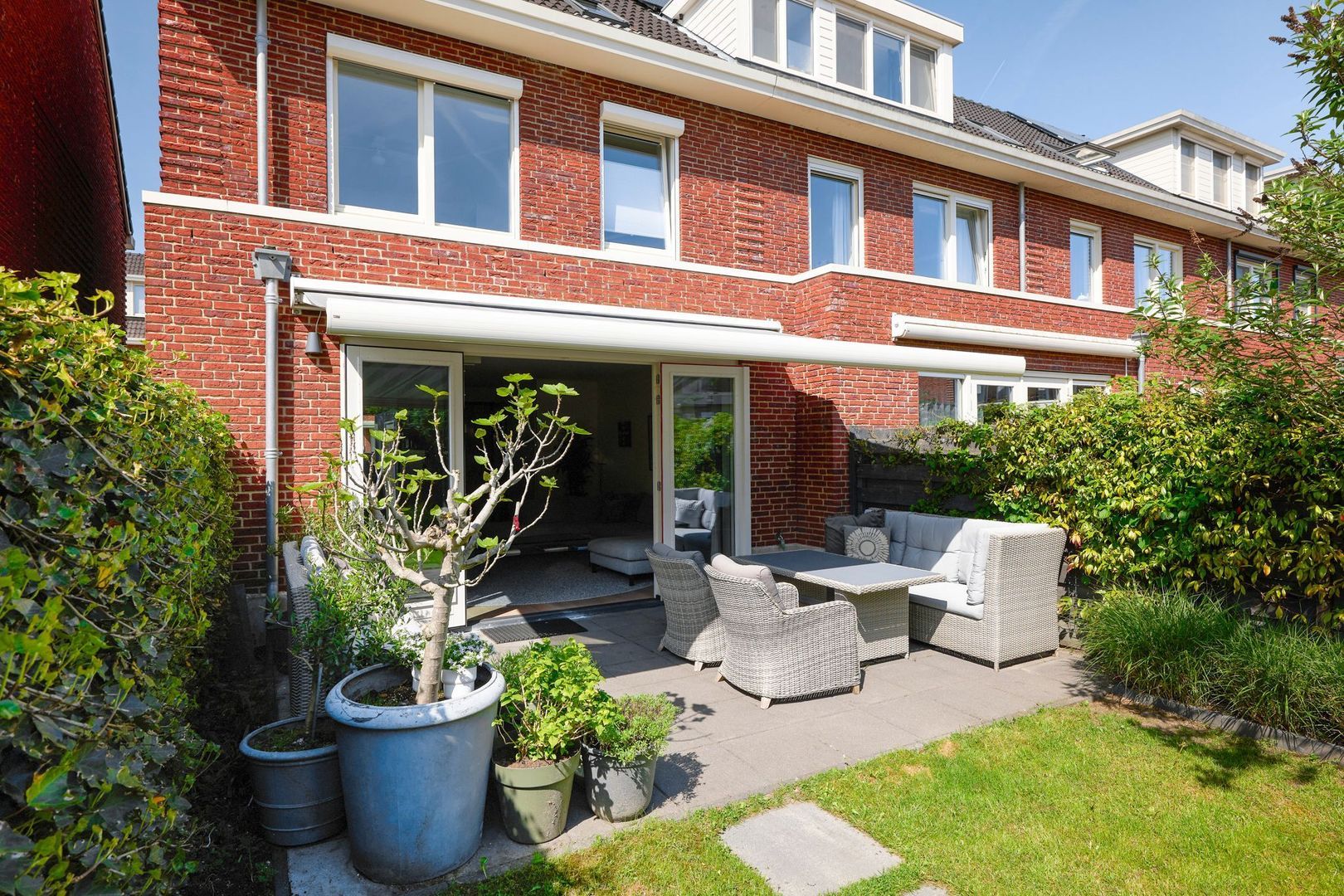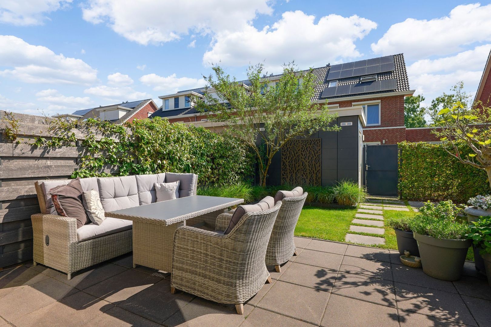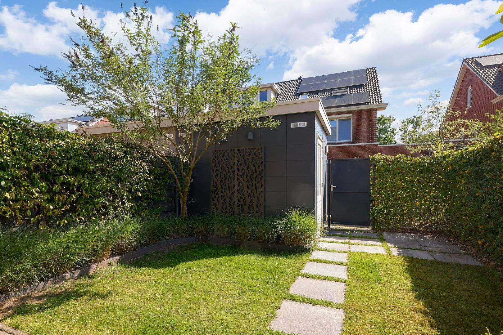 De royale living biedt veel ruimte voor een comfortabele zithoek en een grote eettafel. De open indeling zorgt voor een fijne woonbeleving, met volop lichtinval mede gezien de brede pui met openslaande deuren naar de tuin. De zonnige en goed onderhouden achtertuin van ca. 54m² en heeft een oost-ligging. Deze diepe tuin is voorzien van een terrasgedeelte met aansluitend gras. Hiermee is er voldoende ruimte voor een lounge- en eetgedeelte. Achterin de tuin staat een ruime schuur, en via een achterom bereikt u eenvoudig de straat. Tenslotte beschikt de tuin nog over een elektrisch zonnescherm.