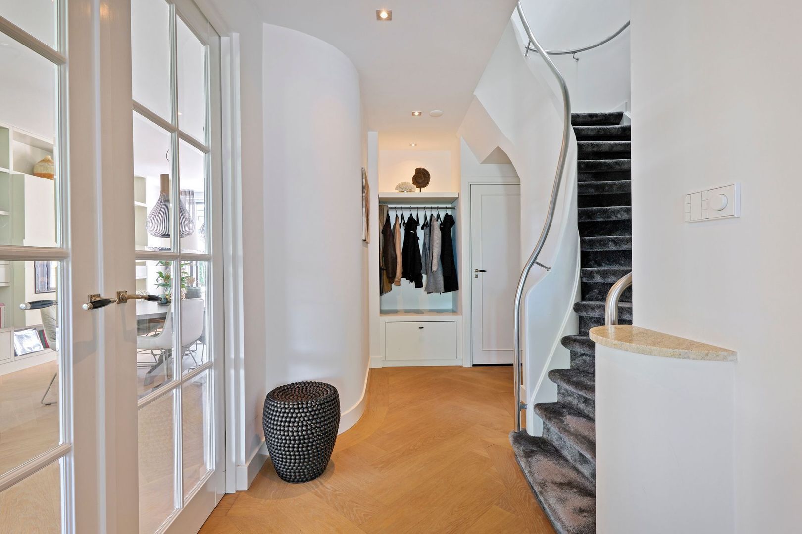 In 2018 is de woning bijzonder smaakvol gerenoveerd. Bij deze renovatie is een uitstekende combinatie gemaakt van moderne en duurzame materialen in een natuurlijke kleurstelling waarbij de authentieke stijlelementen behouden zijn gebleven. Noemenswaardig is de omvangrijke leefverdieping met stijlvolle woonkeuken en een wonderschone halfronde erker. Deze serene verdieping met twee sfeerhaarden biedt, met de groene heg rondom, zeer veel privacy. De beschutgelegen tuin van maar liefst 175m² verlengt deze woonlaag aanzienlijk. Een eye-catcher is de prachtige vorm van het bijzonder lichte trappenhuis met een knipoog naar het “Guggenheim”.