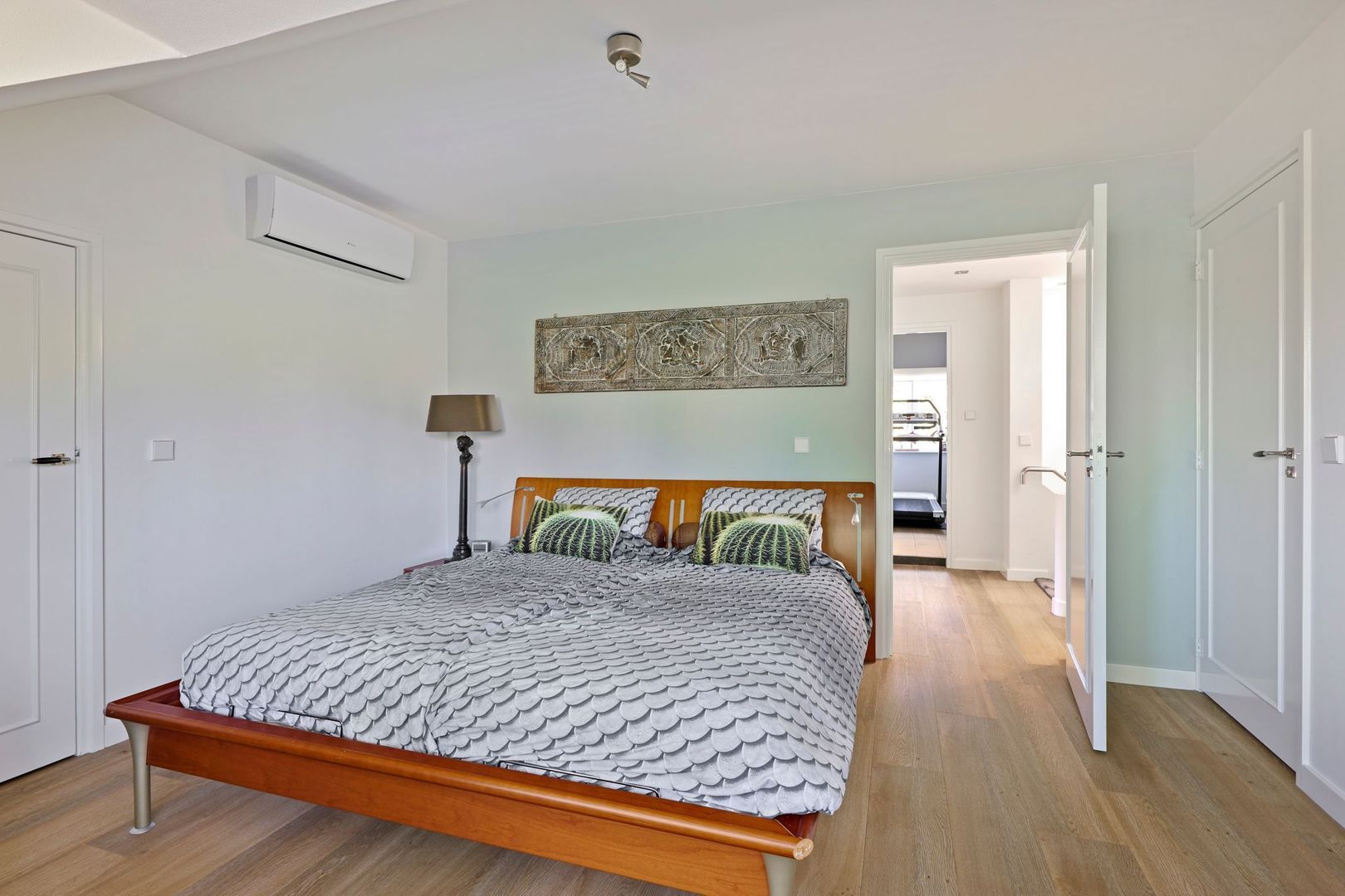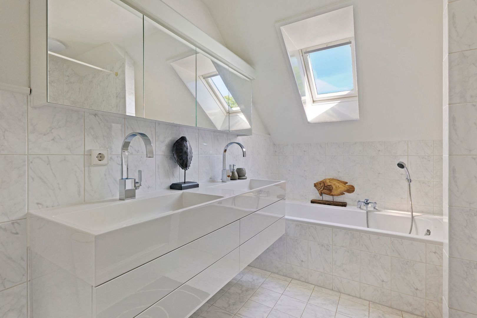 De tweede slaapkamer ligt aan de voorzijde en heeft een dakkapel. Deze kamer met airconditioning is tevens voorzien van een inloopkast en beschikt over een en-suite badkamer. Deze badkamer is geheel wit/grijs van uitvoering en biedt een ligbad, inloopdouche, handdoekradiator, toilet en een hoogglans wit wastafelmeubel met twee wastafels en moderne RVS kranen.