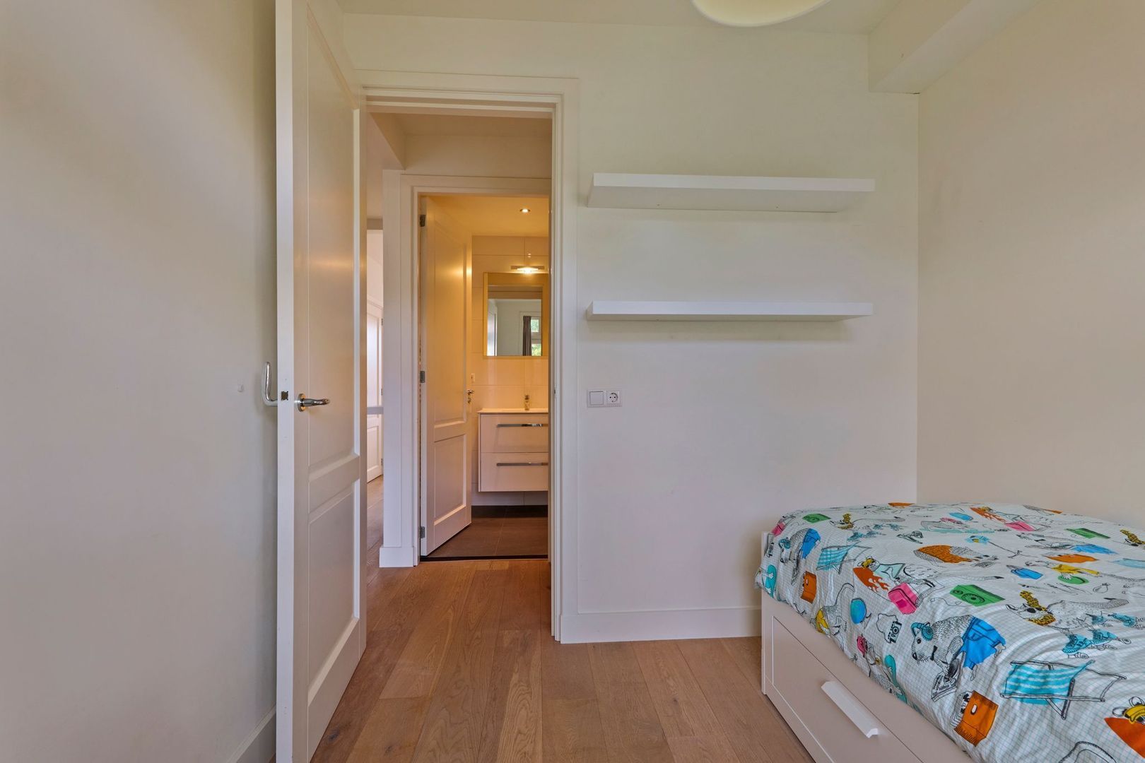 De gehele woning is voorzien van een fraaie houten vloer, strakke witte wanden met veelal inbouwspots en houten kozijnen met dubbele beglazing.
