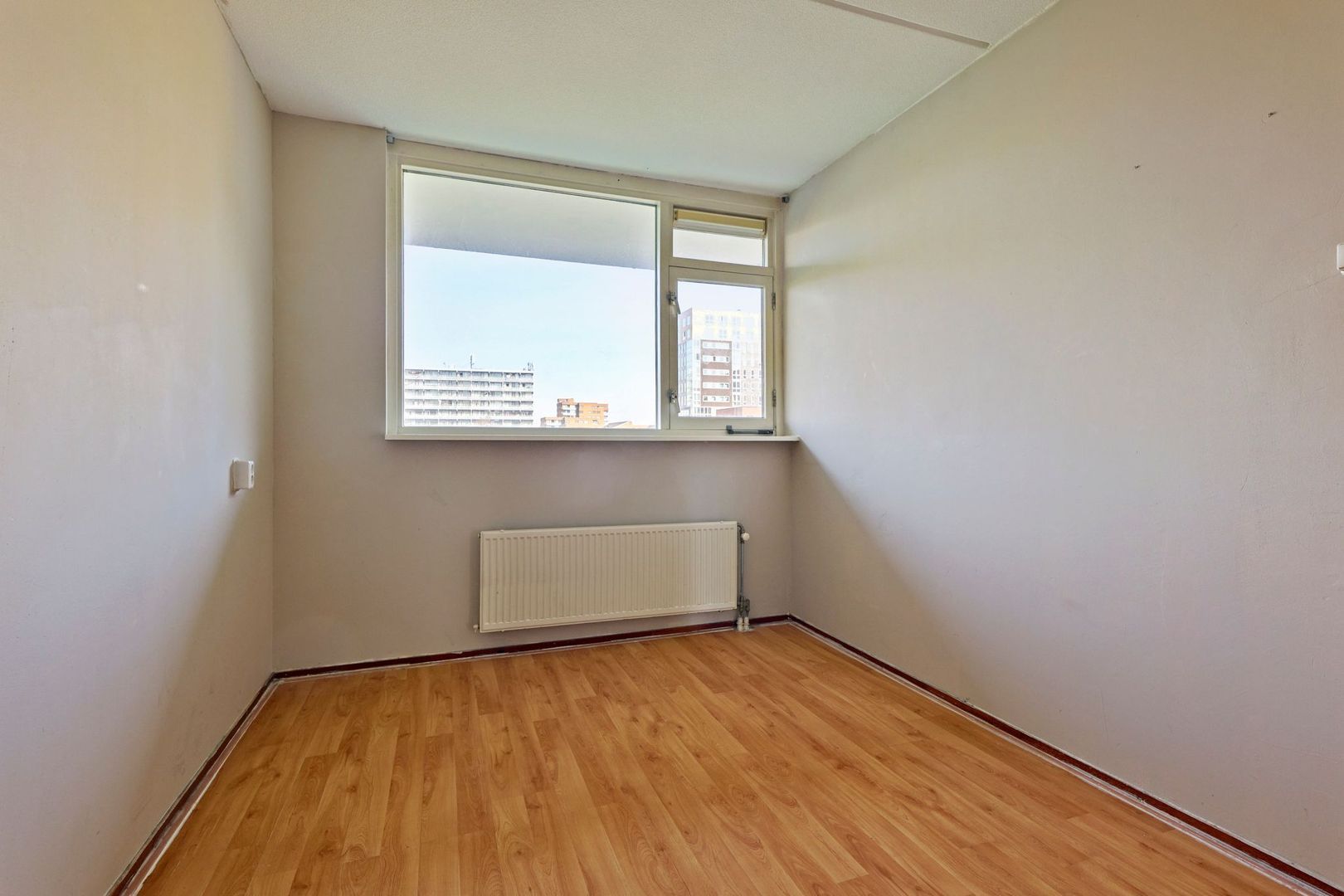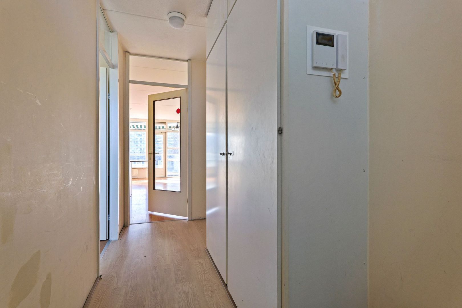 Via de gemeenschappelijke entree bereik je de lift en trappenhuis. Bij binnenkomst in het appartement biedt de hal toegang tot één van de slaapkamers en de woonkamer met open keuken. Hier bevinden zich tevens de meterkast en de unit voor de stadsverwarming.