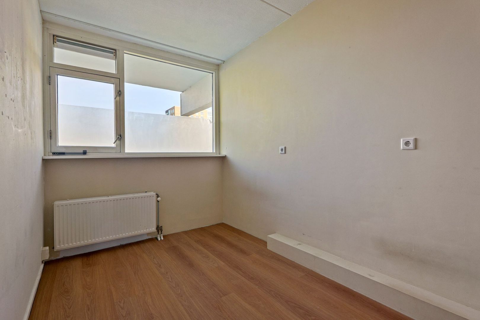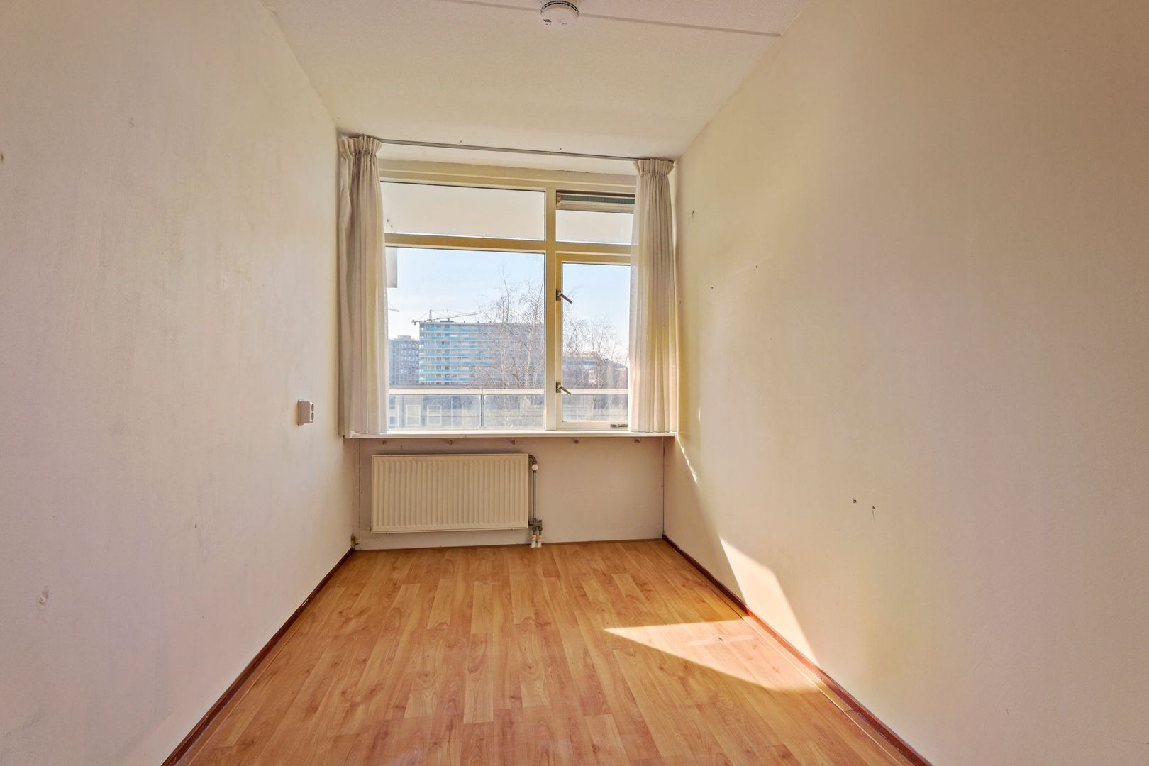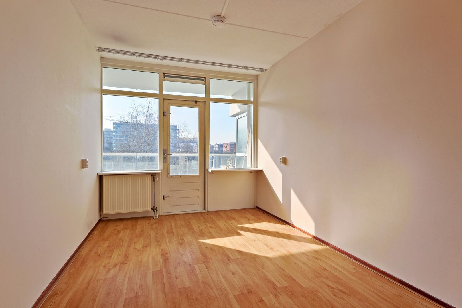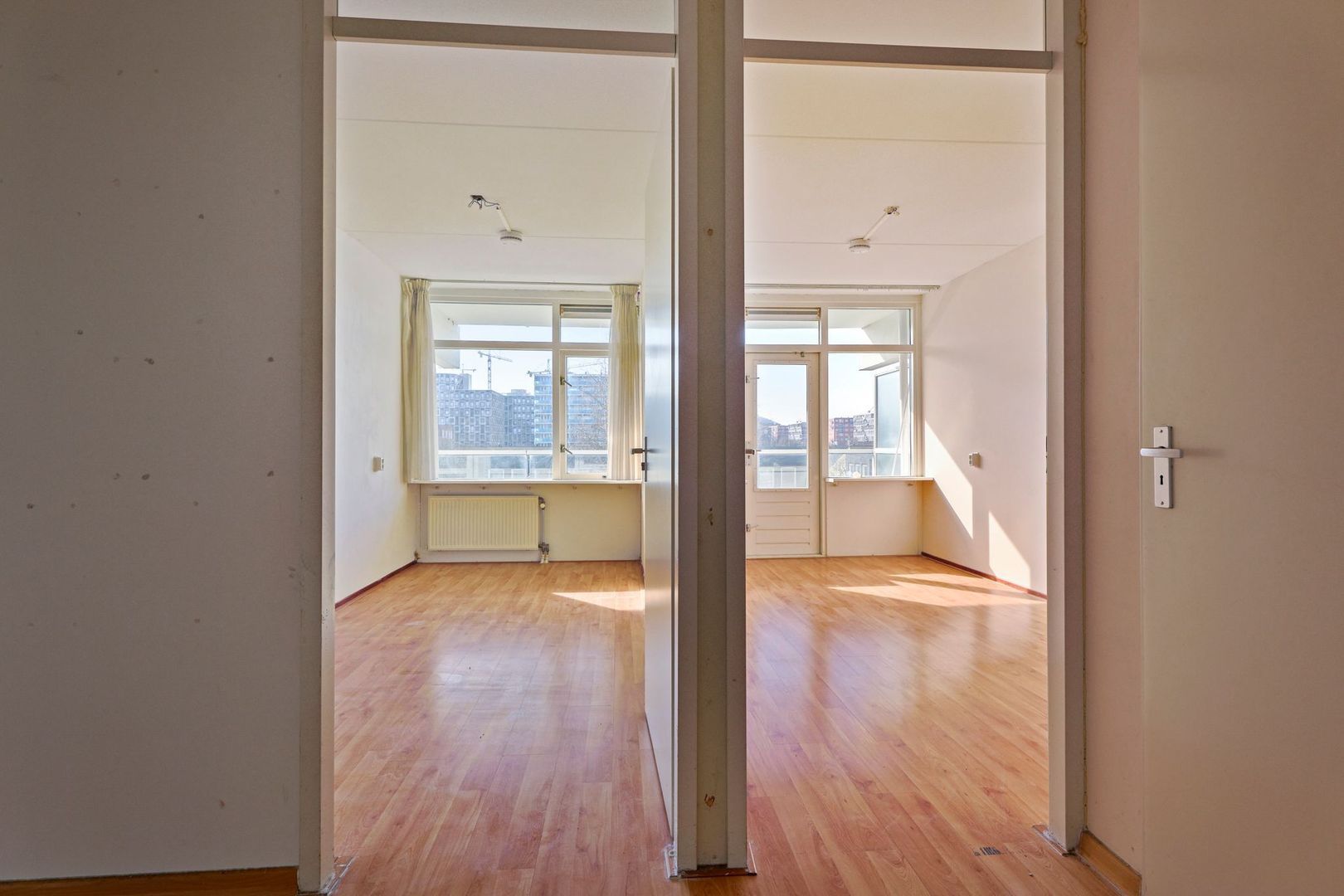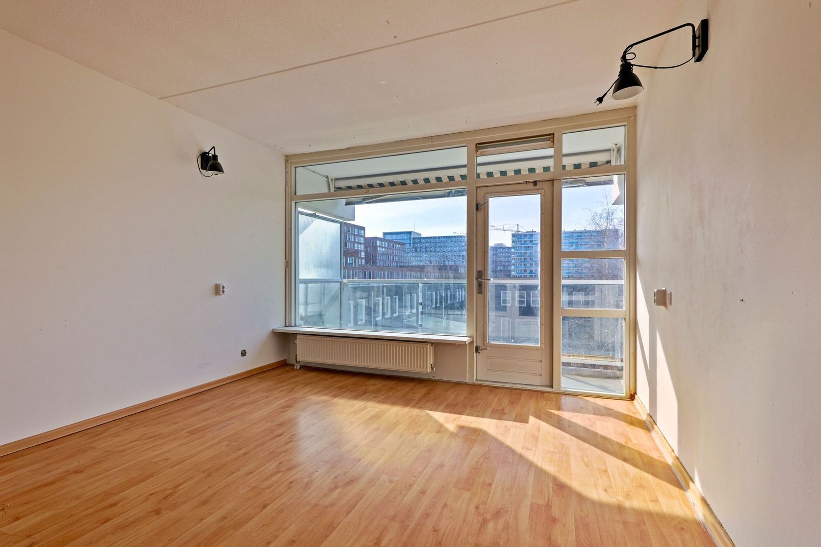 De ruime woonkamer met goede lichtinval geeft toegang tot het woning brede balkon van 14m2 gelegen op het zuidwesten. De open keuken is eenvoudig uitgevoerd met diverse inbouwapparatuur en beschikt over een werkeiland.