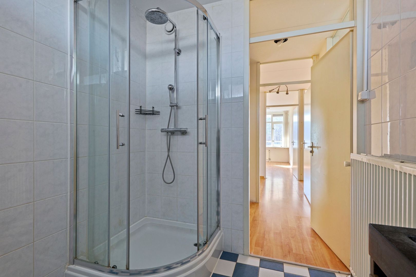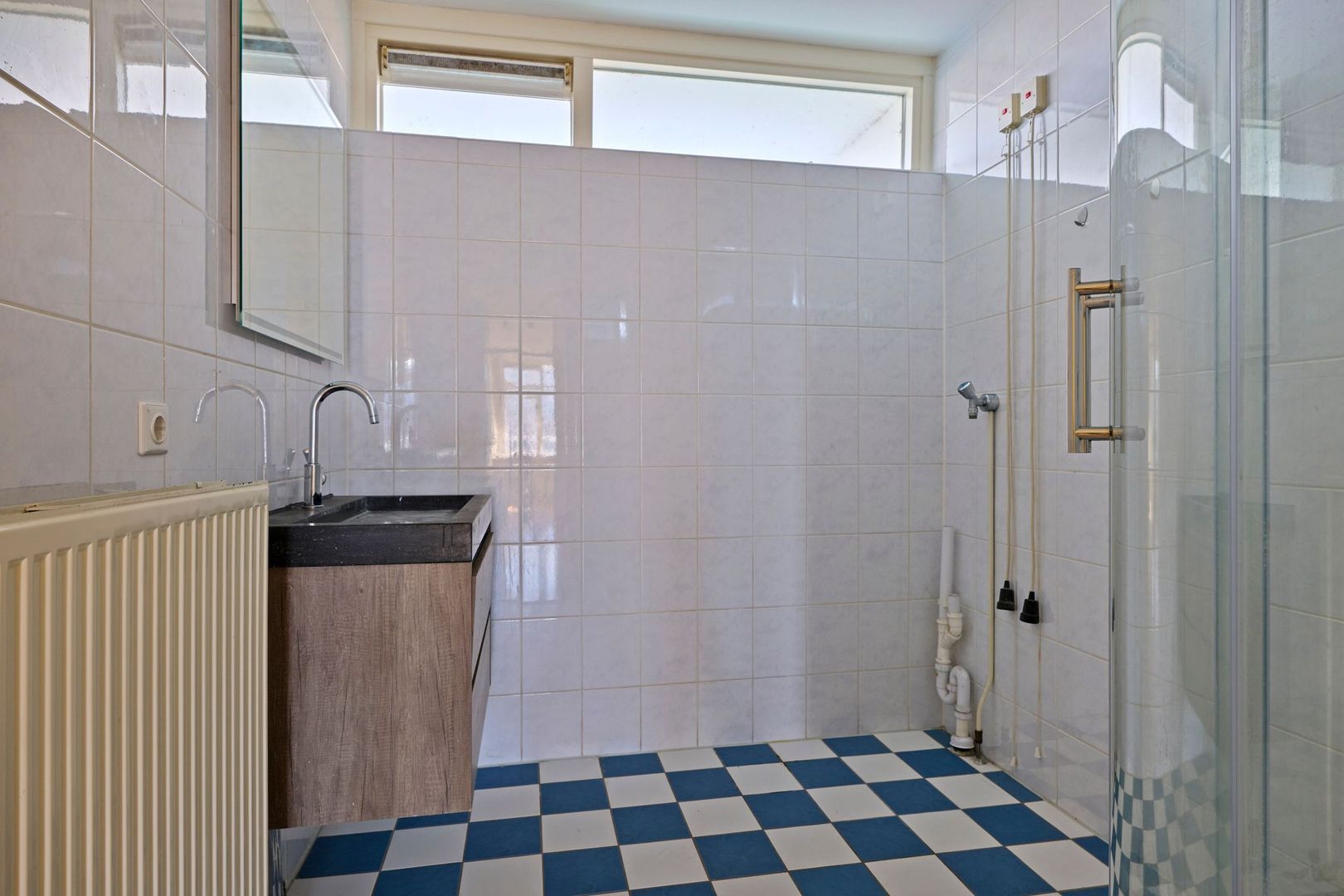 De ruime badkamer is uitgevoerd met een douche en wastafelmeubel. Hier tref je tevens de wasmachine aansluiting. Een inpandige berging biedt praktische ruimte voor extra opslag.