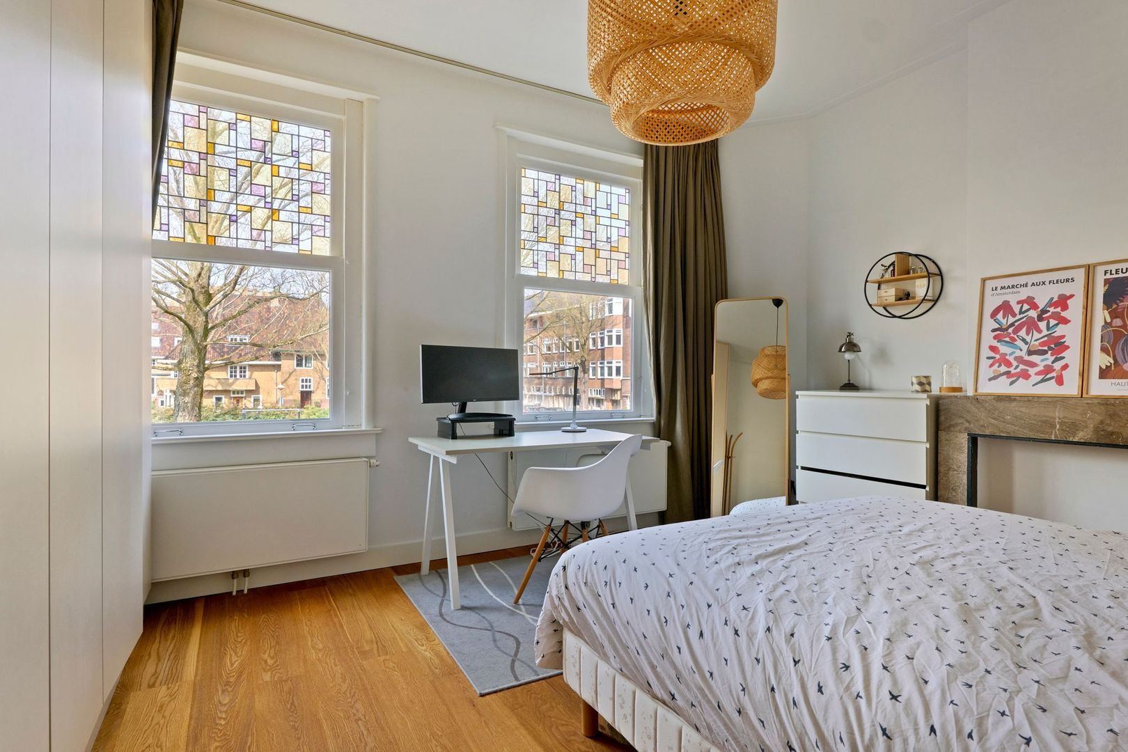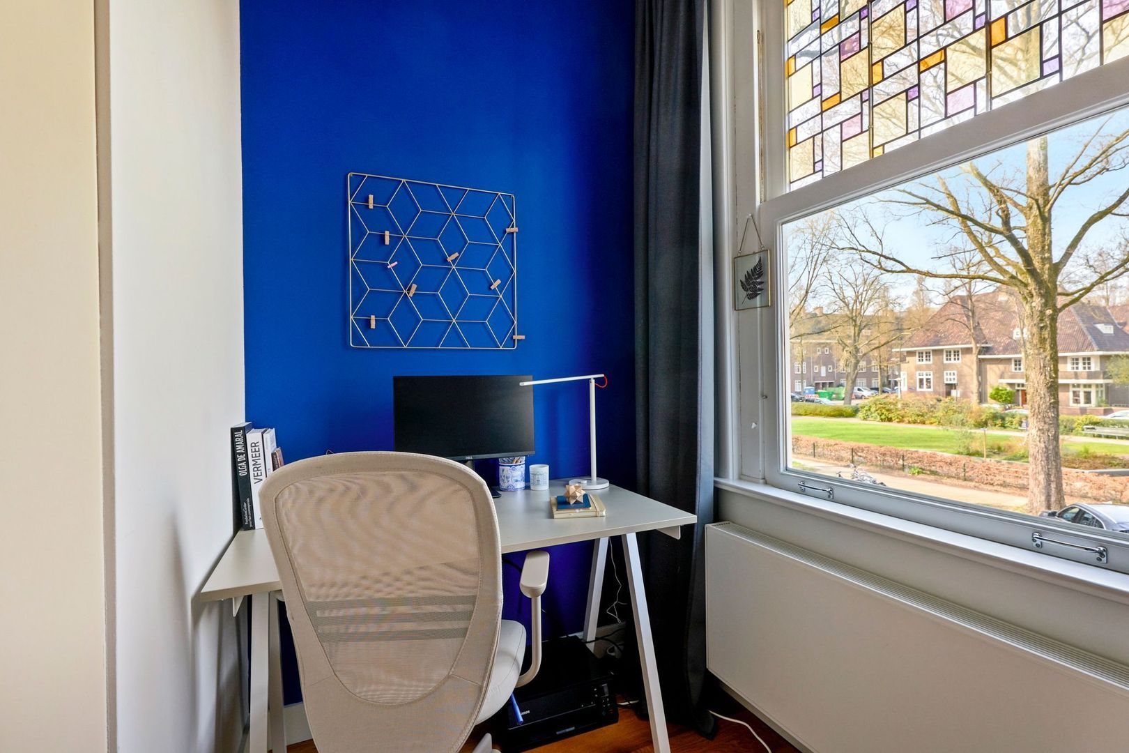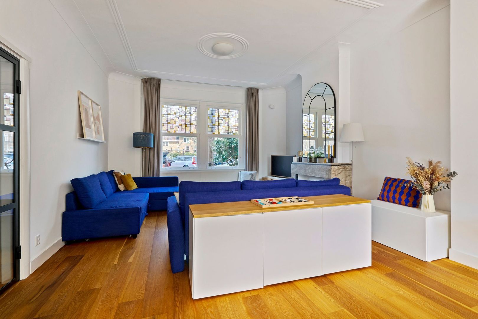 Authentieke details, zoals het glas-in-lood, de paneeldeuren en aanwezige schouwen onderstrepen het karakter van het interieur. Daarbij is de woning voorzien van een mooie eikenhouten vloer, hoge ornamenten plafonds en prachtige kleurencombinaties. De combinatie van een goede afwerking, prachtige originele details en de uitstekende ligging maken dit een geweldige woning op een toplocatie. Prettig detail is dat men aan de voorzijde uitkijkt over een weids opgezet speelplein.