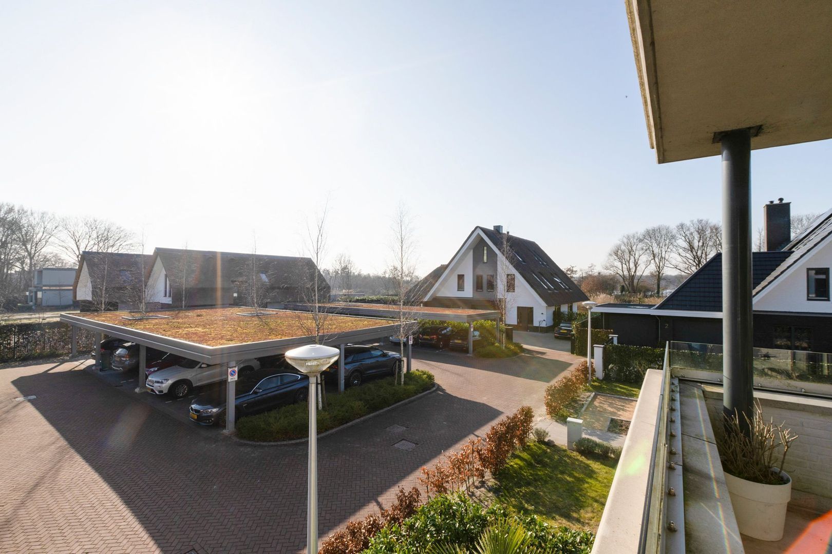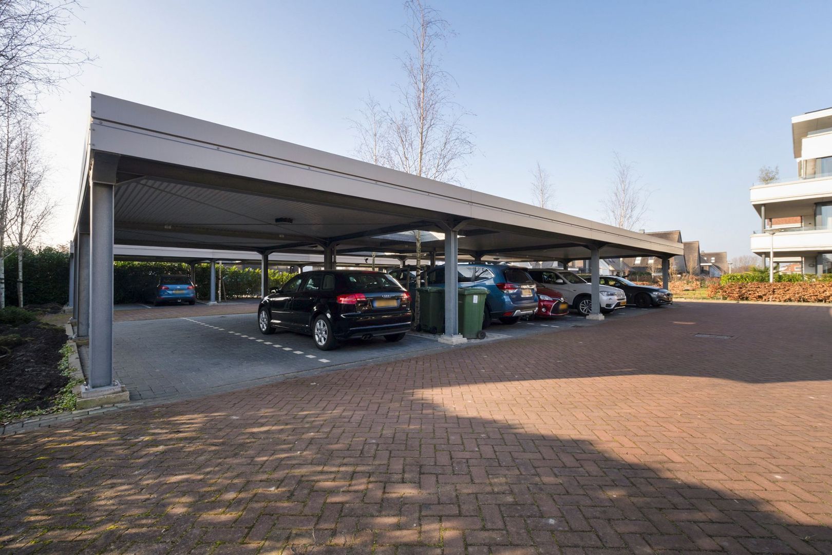 Je beschikt over een eigen overdekte parkeerplaats (met groen dak)