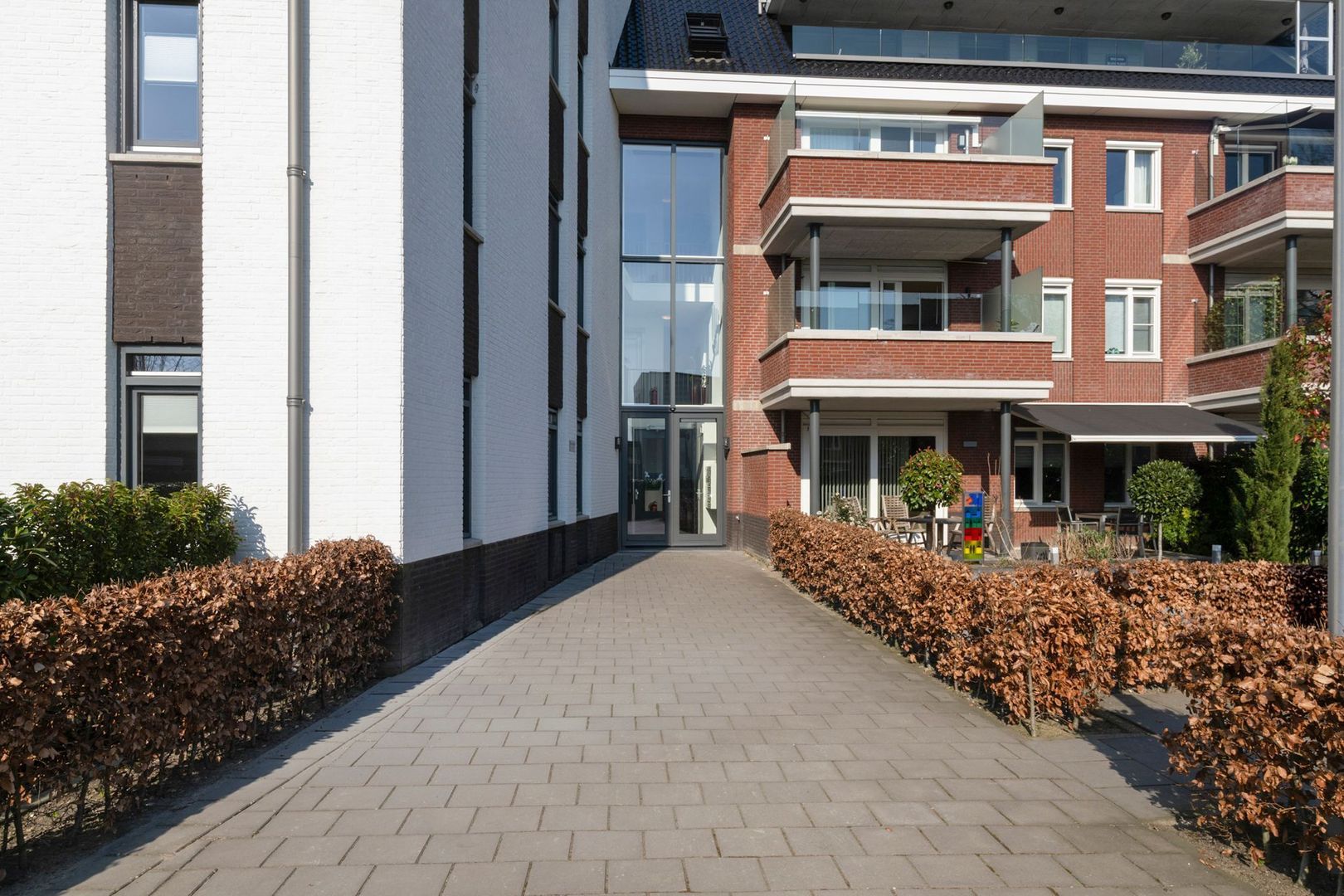 Via de nette gemeenschappelijke entree op de begane grond is het appartement gelegen op de eerste verdieping bereikbaar per lift en trap. Bij binnenkomst treft u een ruime hal die toegang biedt tot alle vertrekken.