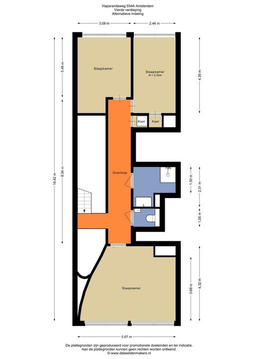 Indien gewenst is mogelijk om 2 extra slaapkamers te creëren. Zie hiervoor de alternatieve plattegrond. Door een dergelijke aanpassing wordt het woonoppervlak met circa 6m2 vergoot, waardoor men deze verbouwing direct terugverdiend.