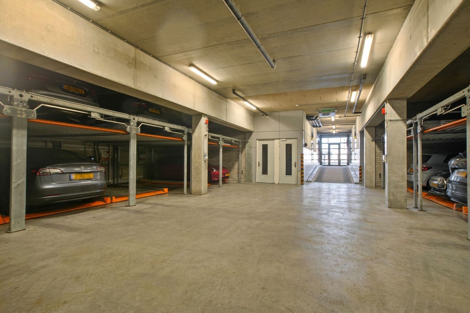 Vanuit de gemeenschappelijke entree op de begane grond én vanaf de straatzijde komt u in de onderbouw waar zich zowel de externe (fietsen)berging van 5m² als de parkeerplaats met elektrische laadpaal bevinden.