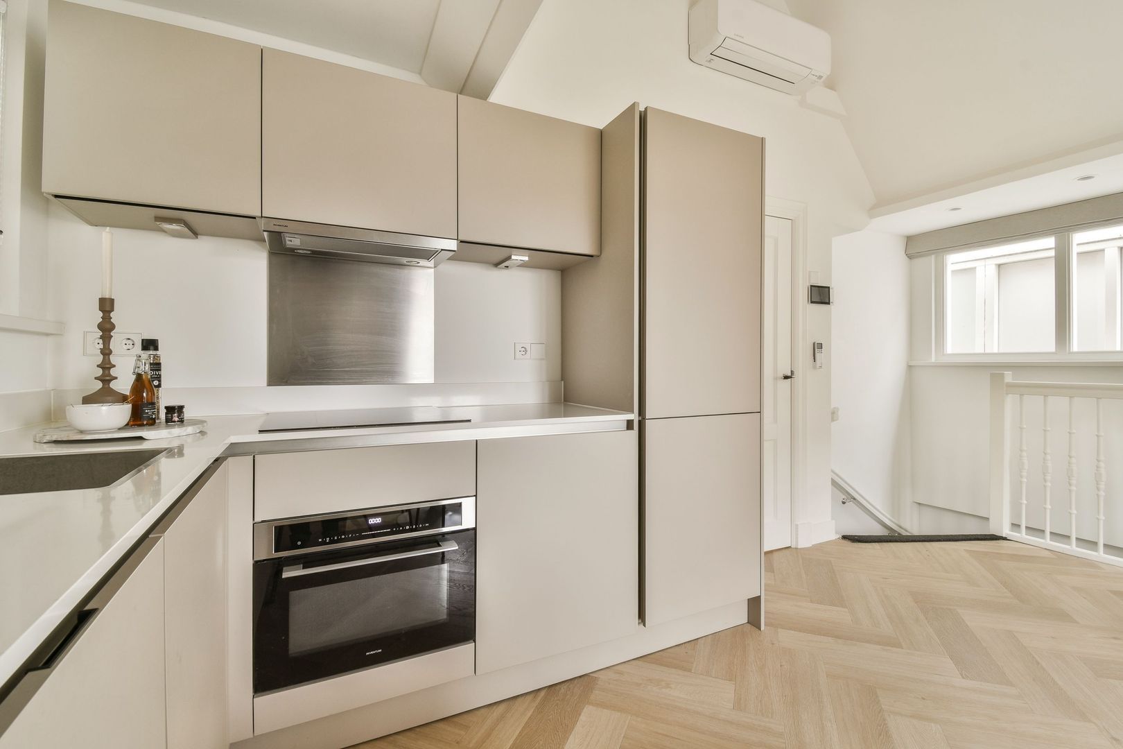 Via de gemeenschappelijke entree en het gestoffeerde trappenhuis bereik je de entree van de woning op de tweede verdieping. De interne trap brengt je naar de derde (tevens bovenste) verdieping waar je direct de woonkamer met open keuken betreedt. De keuken is uitgevoerd in een beige kleurstelling en beschikt over inbouwapparatuur waaronder een vaatwasser, inductiekookplaat, koel-vries combinatie en een ingebouwde wasmachine. De woonkamer beschikt over airconditioning.