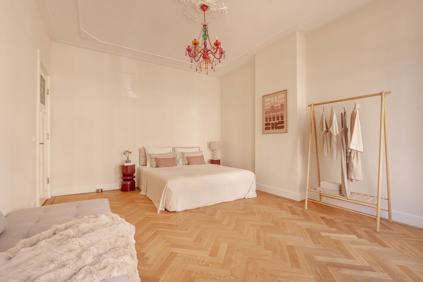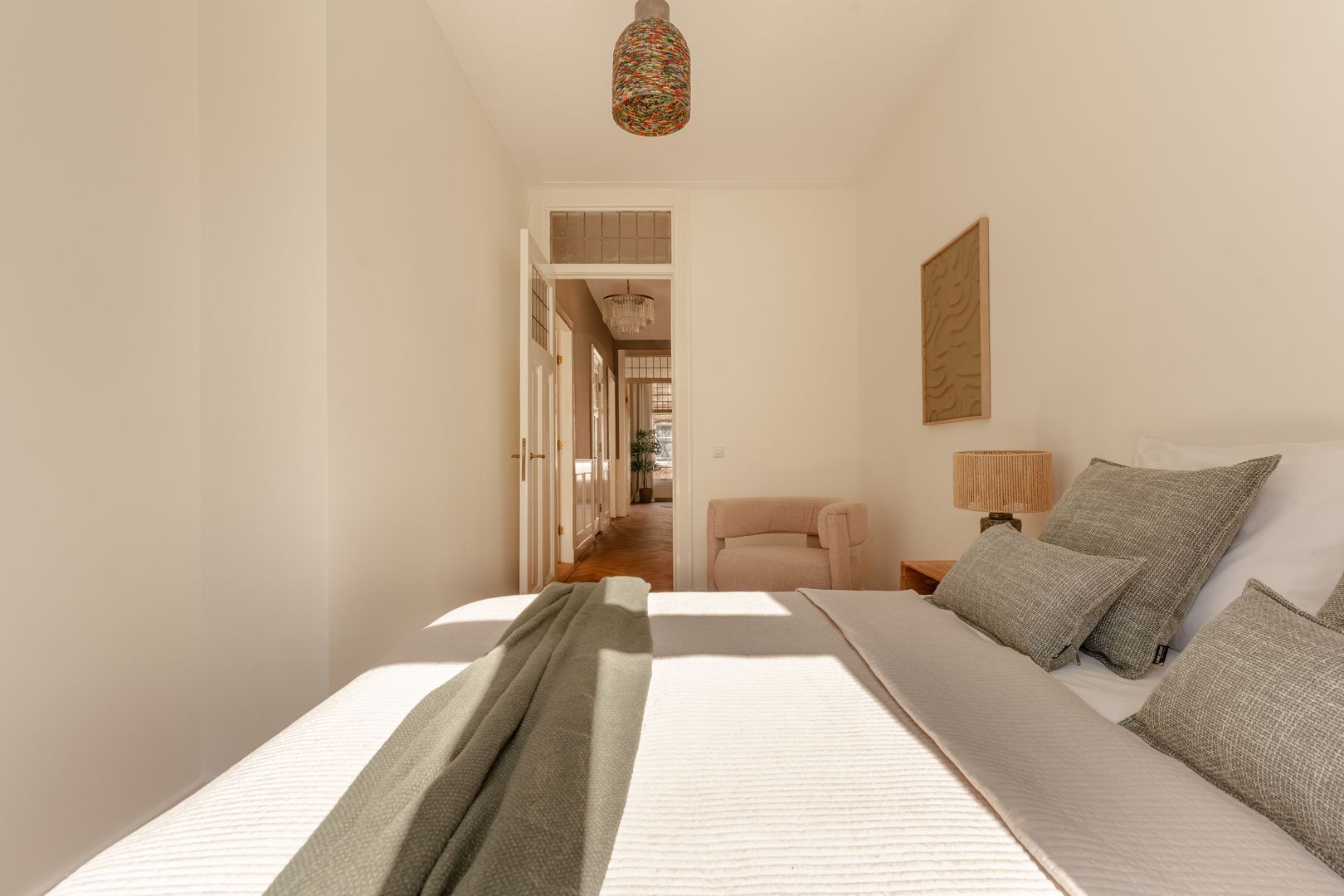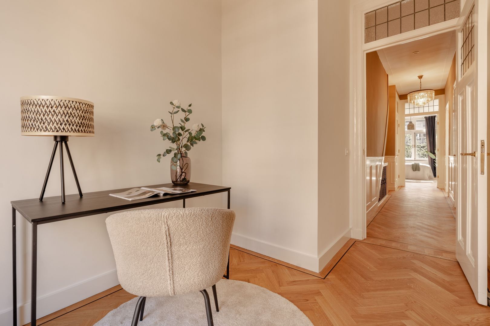 De slaapverdieping is geheel voorzien van een kwalitatieve parketvloer in visgraatmotief.