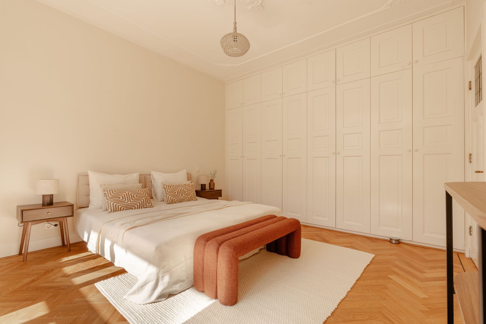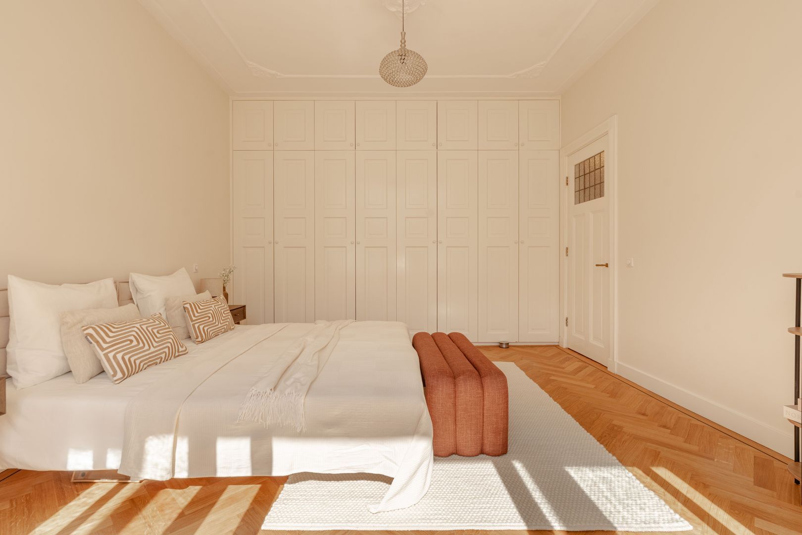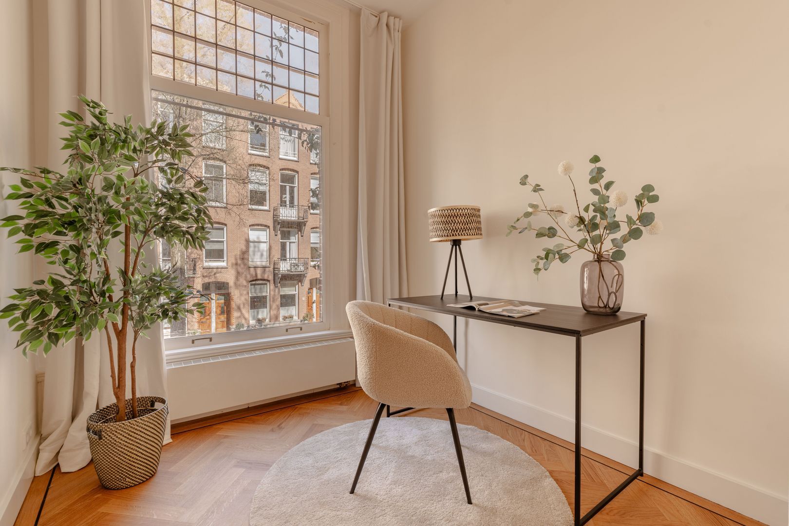 De slaapverdieping is geheel voorzien van een kwalitatieve parketvloer in visgraatmotief.