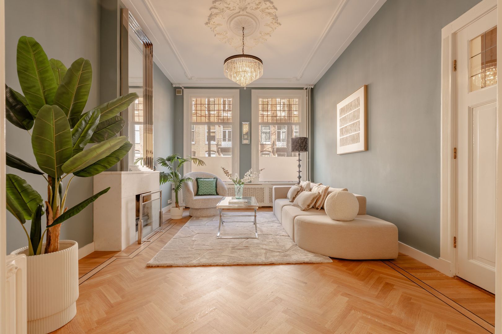 Royaal en uiterst charmant dubbel benedenhuis van circa 171m² (bvo 247m²), voorzien van een diepe en zonnige tuin van circa 62m² en een ruim souterrain van 72m². Dit klassieke familiehuis kenmerkt zich door een overvloed aan authentieke details, indrukwekkend hoge ornamentenplafonds en een royale woonverdieping met een ruime serre. De woning beschikt over vier volwaardige slaapkamers en een stijlvolle, moderne badkamer. Gelegen op eigen grond in het geliefde en prestigieuze Oud-Zuid, biedt dit object een uitzonderlijke woonbeleving.