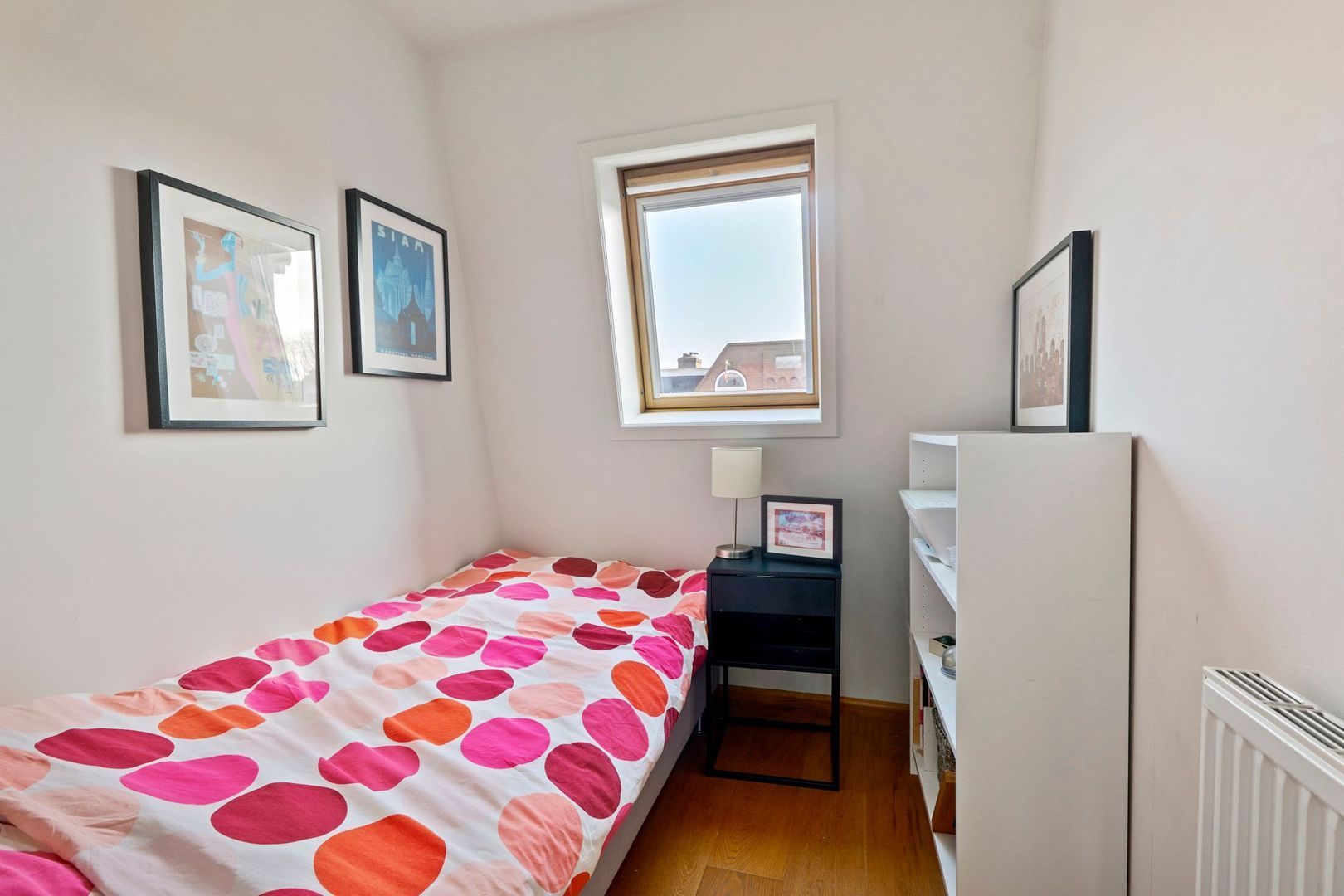 De twee slaapkamers zijn aan de voorzijde van het pand gelegen. De hoofdslaapkamer bevindt zich aan de rechterzijde, is voorzien van een dakkapel en Velux raam, en biedt plaats voor zowel een tweepersoonsbed als een goede kledingkast. Naastgelegen kamer beslaat momenteel een logeerkamer en kan perfect dienen als werkkamer, kinderkamer of kledingkamer.