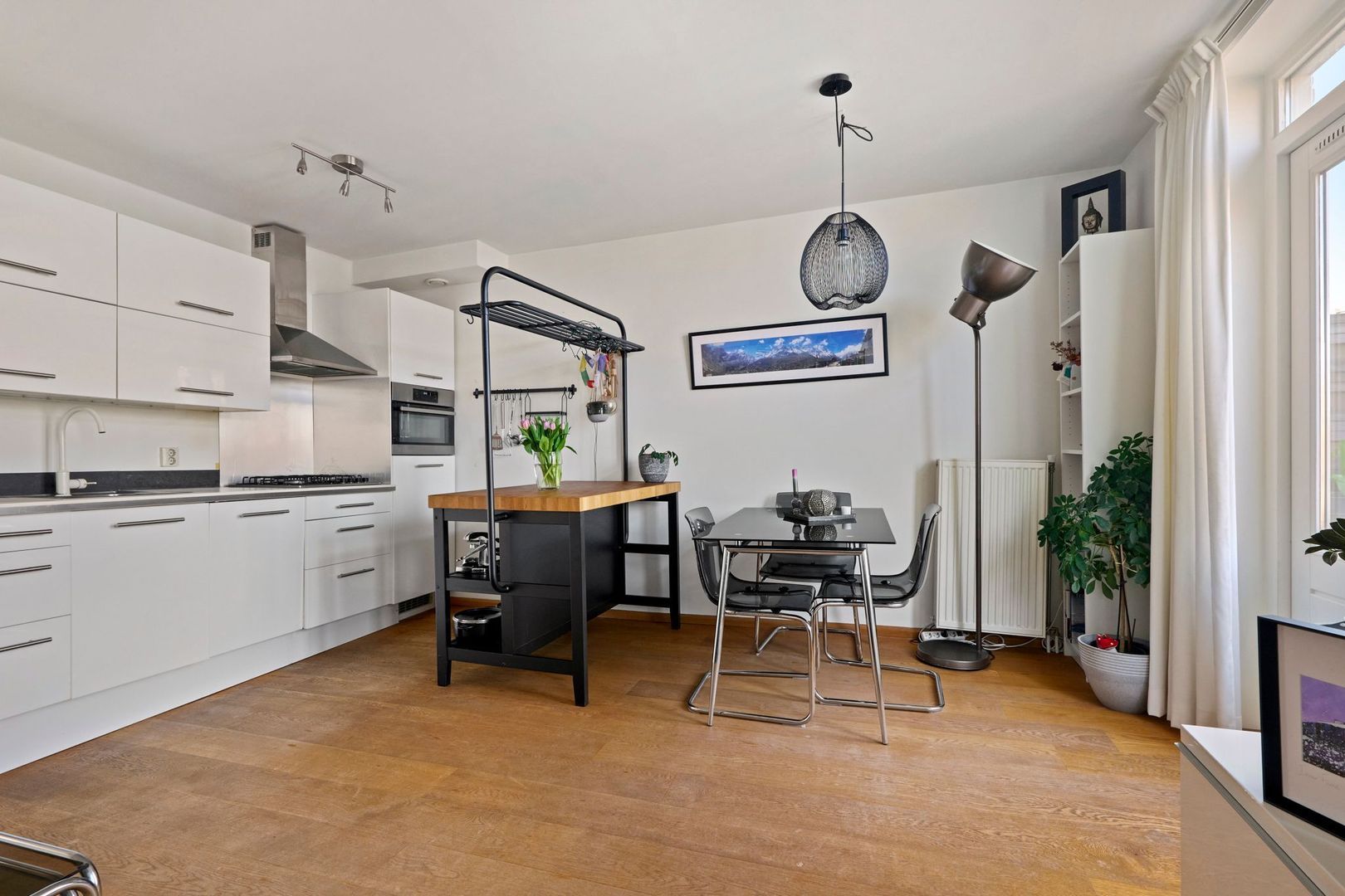 De keuken is wit van uitvoering met RVS grepen en is volledig uitgerust met inbouwapparatuur.