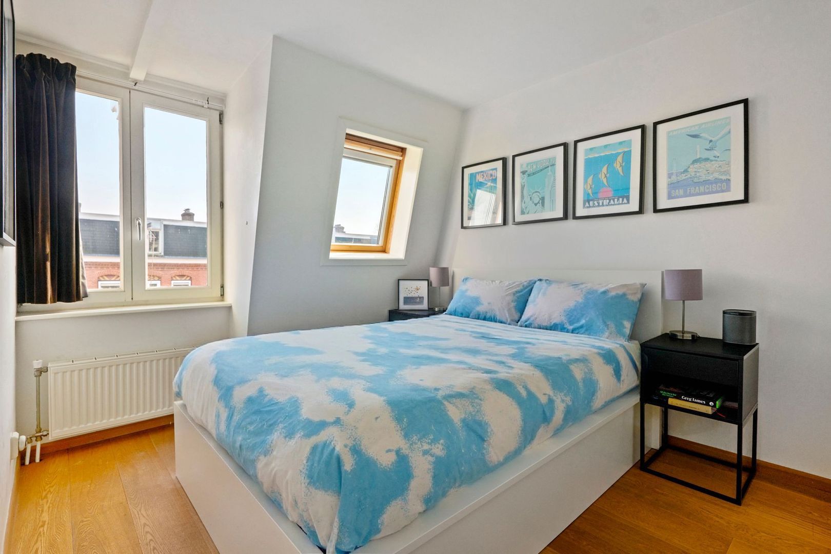 Bijzonder licht en sfeervol 3-kamerappartement van 51m² met een geweldig dakterras van 32m² én een diep en breed balkon van 10m². Bij binnenkomst word je direct overvallen door de rijkelijke lichtinval maar ook zeker de fijne, rustige ambiance, en dat midden in deze bruisende omgeving. Noemenswaardig is de aangename living aan de achterzijde met openslaande deuren naar het diepe balkon wat een verlengstuk is van de woning. Het royale dakterras met zicht over de hele stad maakt deze woning helemaal af.