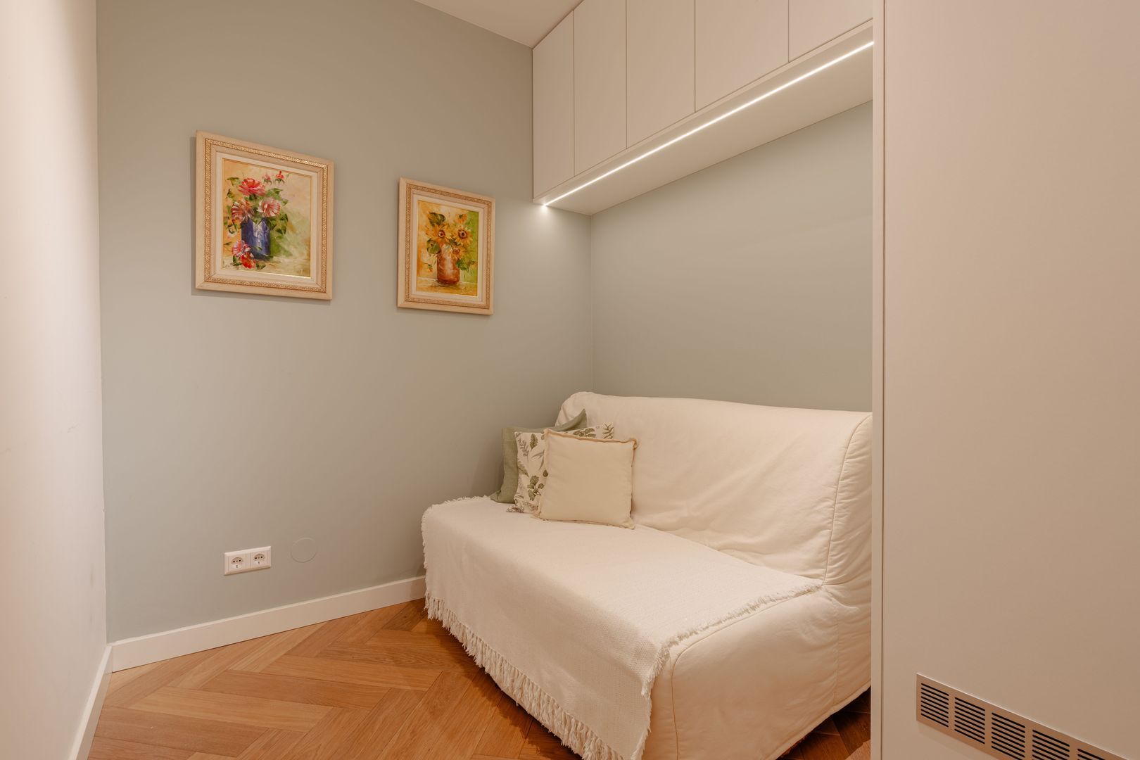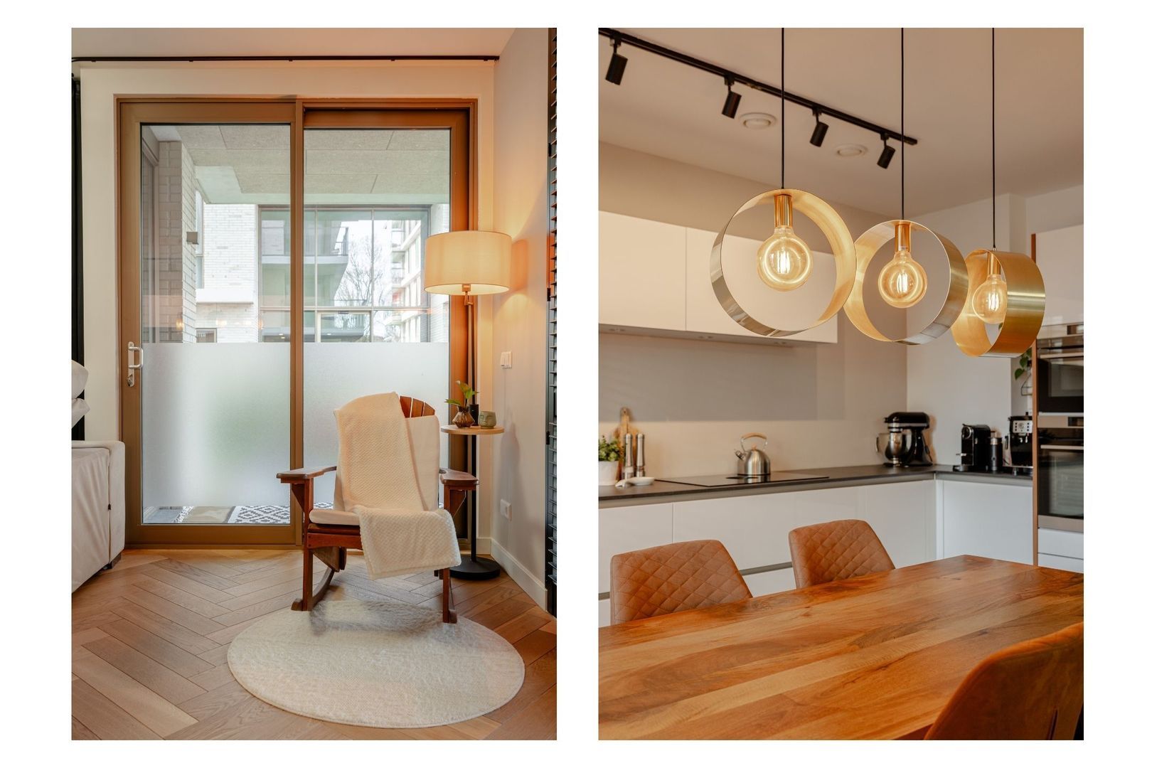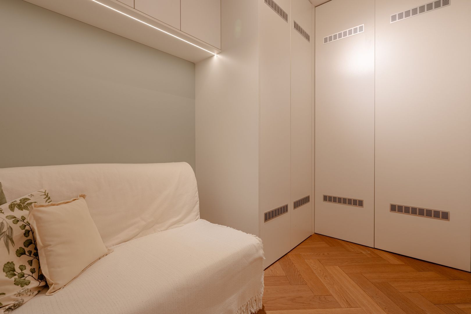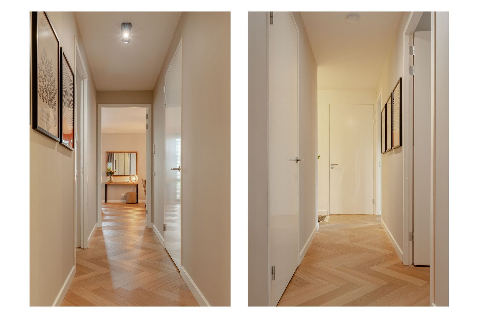 Het appartement is voorzien van diverse op maat gemaakte inbouwkasten en een prachtige houten visgraatvloer die door de gehele woning is doorgelegd. Alles is zorgvuldig uitgevoerd en uiterst efficiënt ingedeeld.