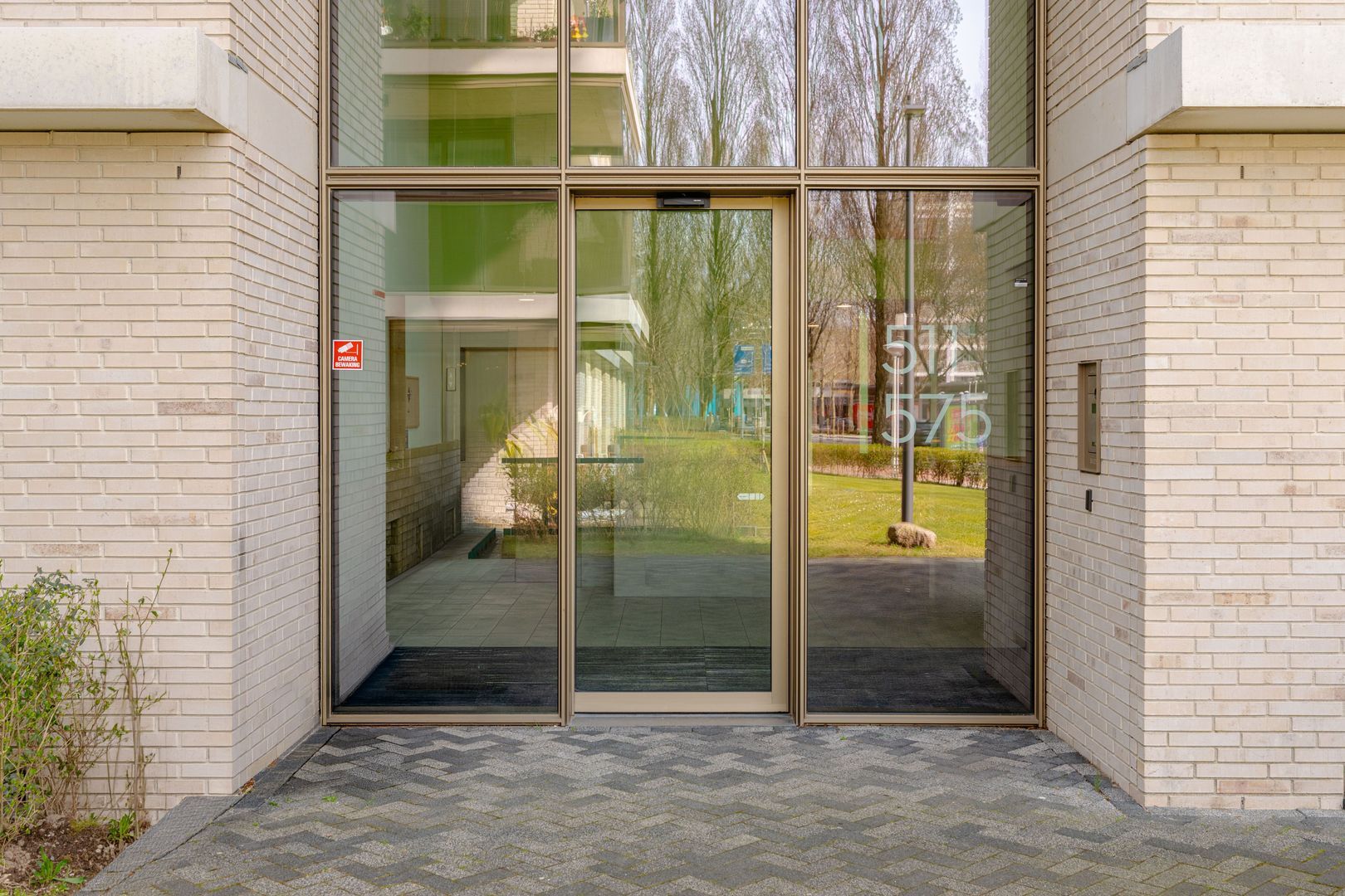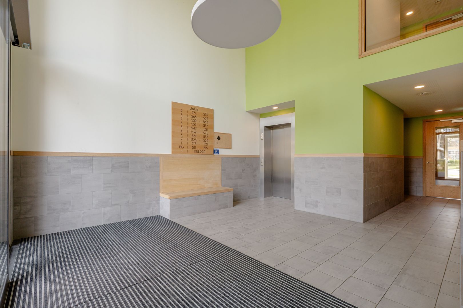 De gemeenschappelijke entree is te bereiken vanuit de parkachtige binnentuin. Hier tref je de lift, brievenbussen en bellentableau.
