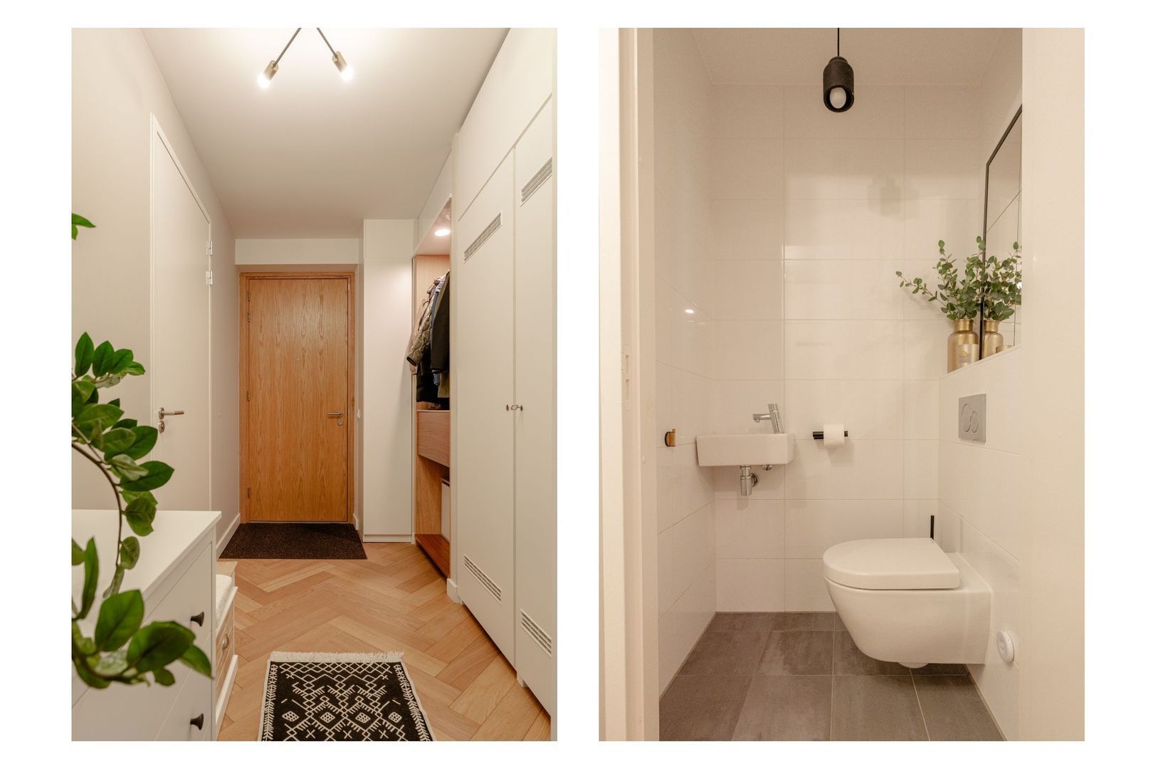 Bij binnenkomst in het appartement biedt de ruime hal met handige garderobekast, toegang tot het separate toilet en de overige ruimtes.