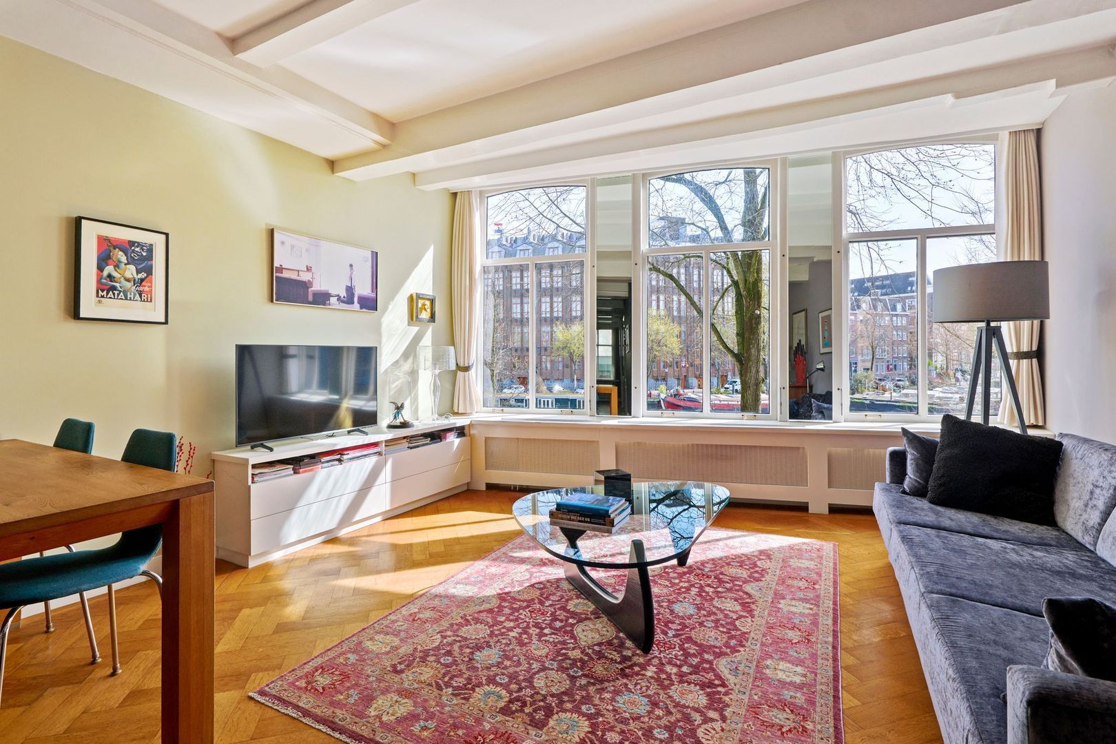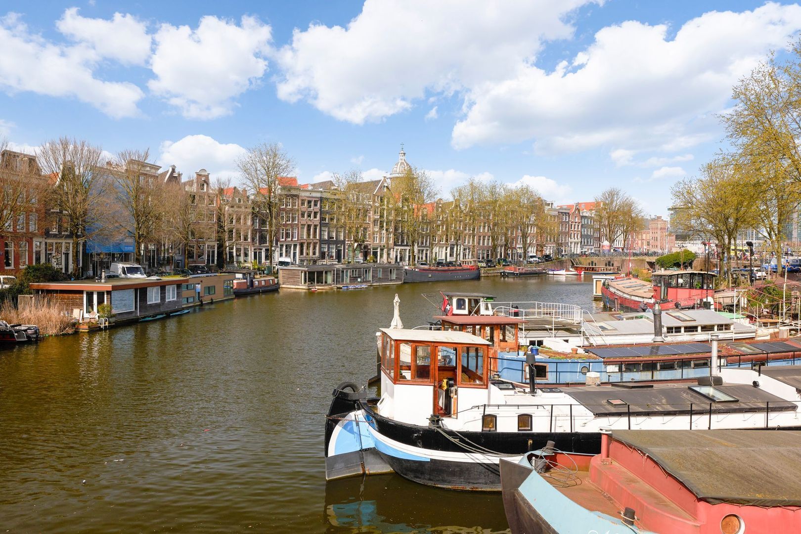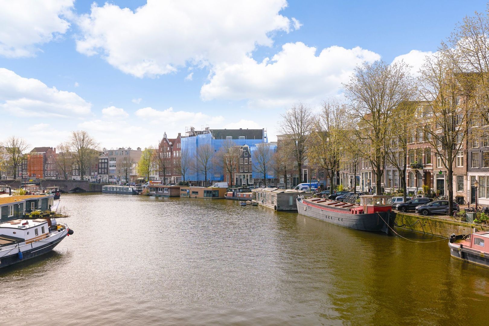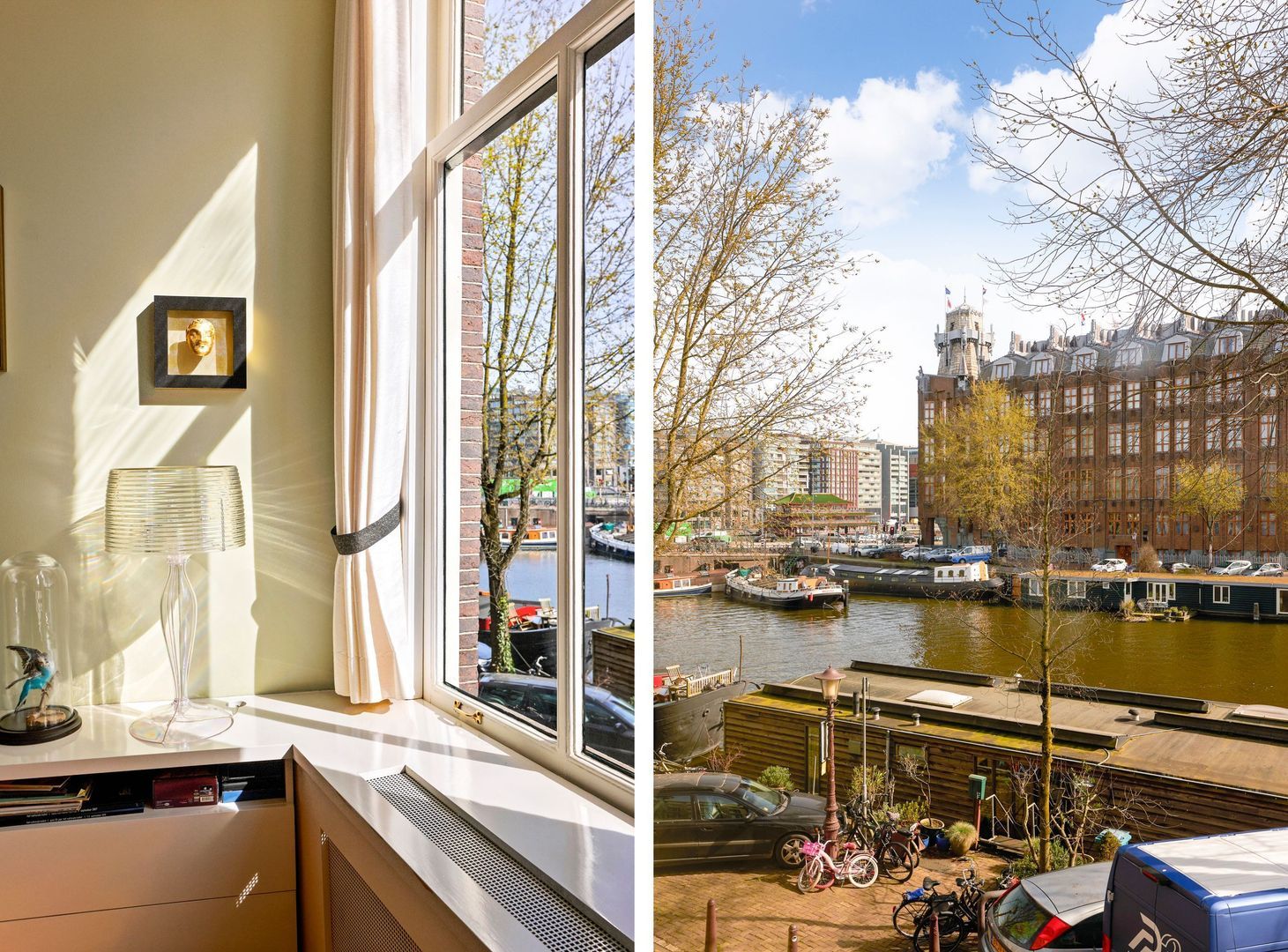 Magnifiek vrij uitzicht over de gracht en de Montelbaantoren;