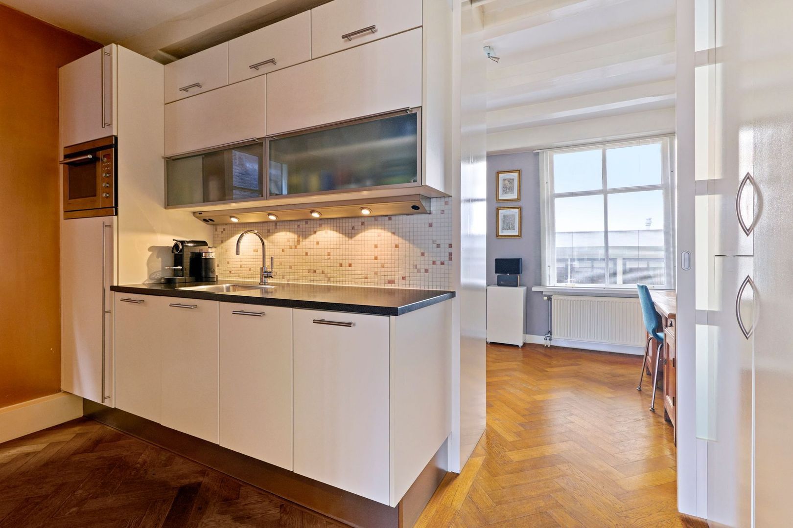 Deze gehele verdieping is voorzien van een eiken visgraat parketvloer.