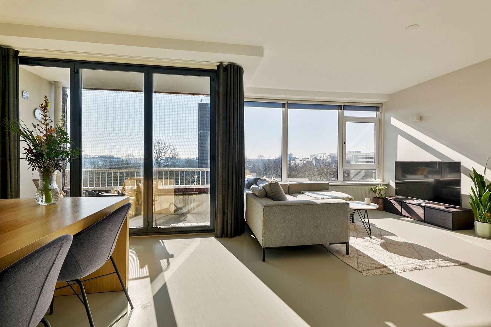 Hoogwaardig en doordacht verbouwd tweekamerappartement van 67m² met een balkon van 4m² op het zuiden en een (fietsen)berging van 6m² in de onderbouw. De woning is gelegen op de zesde verdieping van een goed onderhouden appartementencomplex. Dit fijne appartement beschikt over grote raampartijen waardoor er veel natuurlijk licht binnenvalt. De woning heeft een ruime woonkamer, een fijne slaapkamer en een moderne keuken en badkamer. Vanaf het balkon geniet u van een vrij uitzicht en volop privacy. De erfpachtcanon is reeds eeuwigdurend afgekocht!