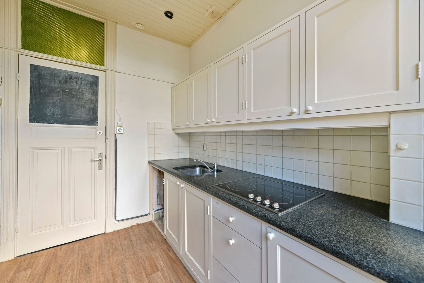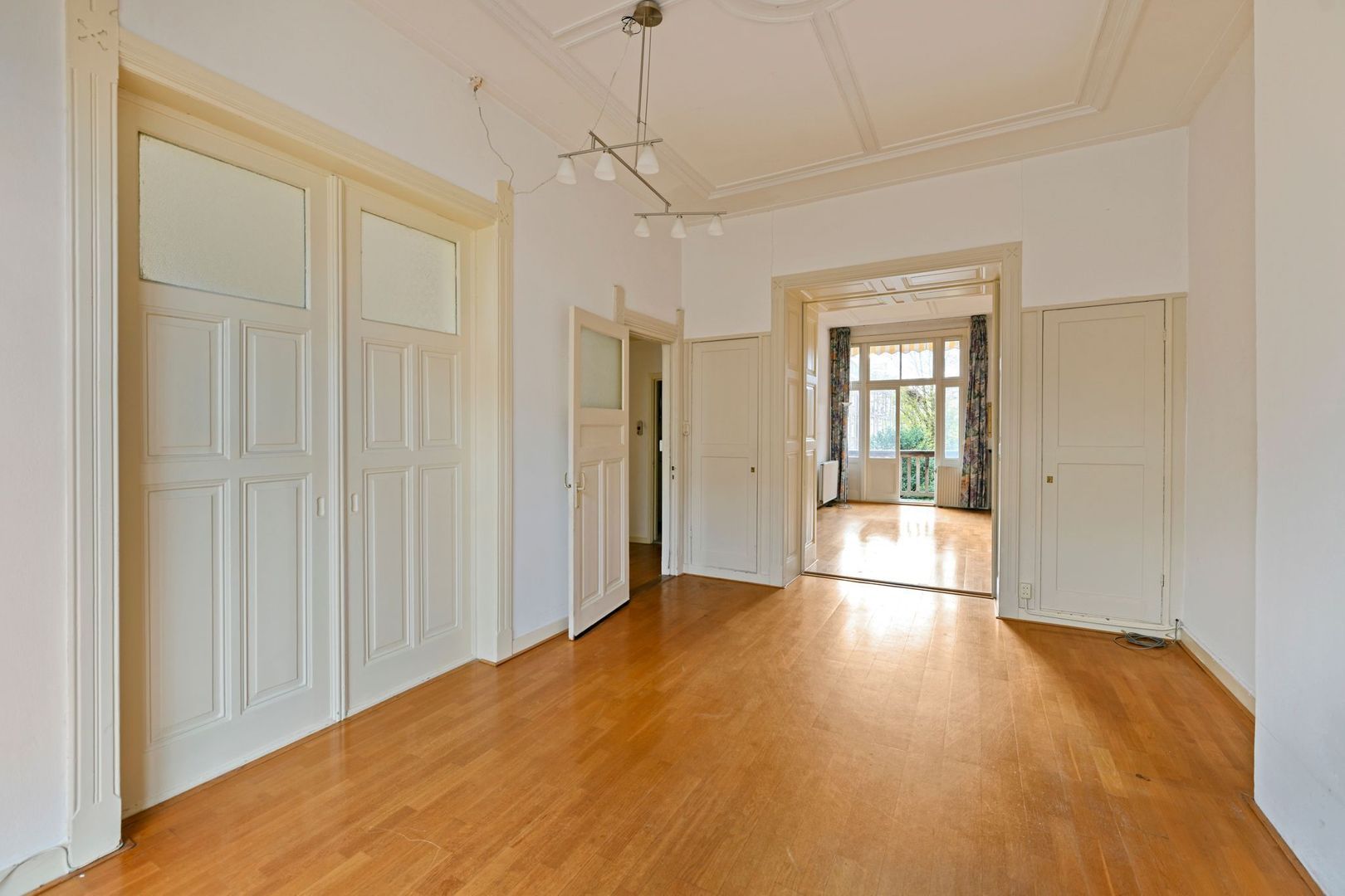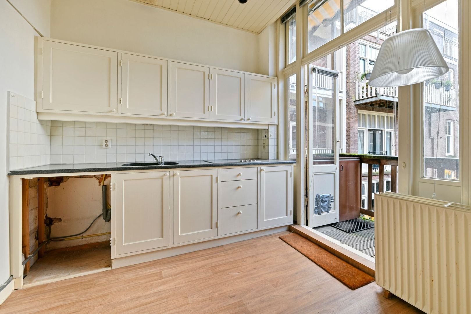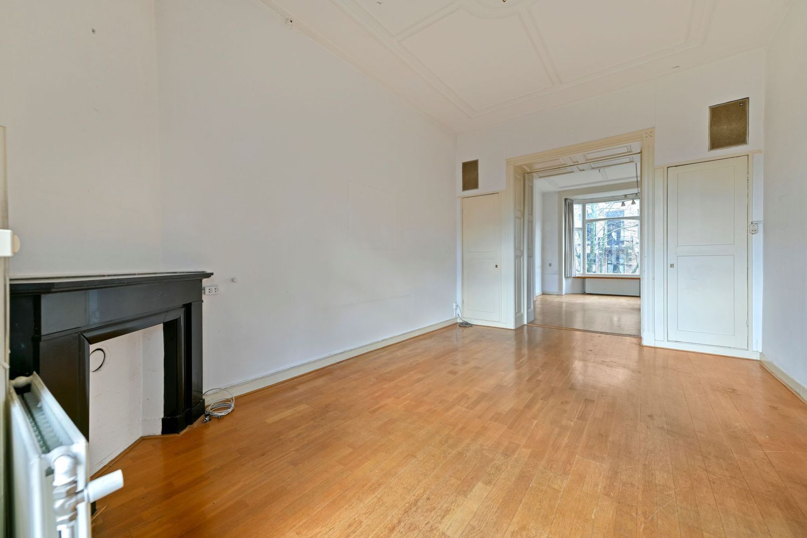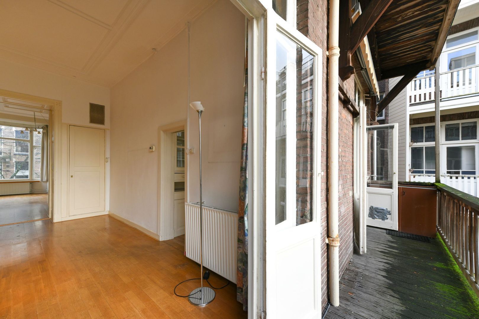 De brede gang biedt toegang tot alle aanwezige ruimtes. De zeer lichte woonkamer en suite heeft een prachtige lichtinval en een zonnig balkon aan de achterzijde op het westen. De woonkamer biedt aan de achterzijde toegang tot de ruime woon-/eetkeuken, welke over een deur naar het balkon beschikt, een toegang naar het centrale trappenhuis alsmede een prachtige originele kast.