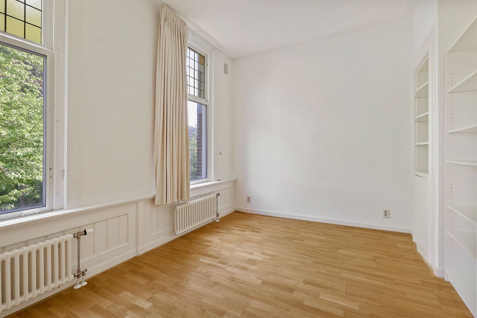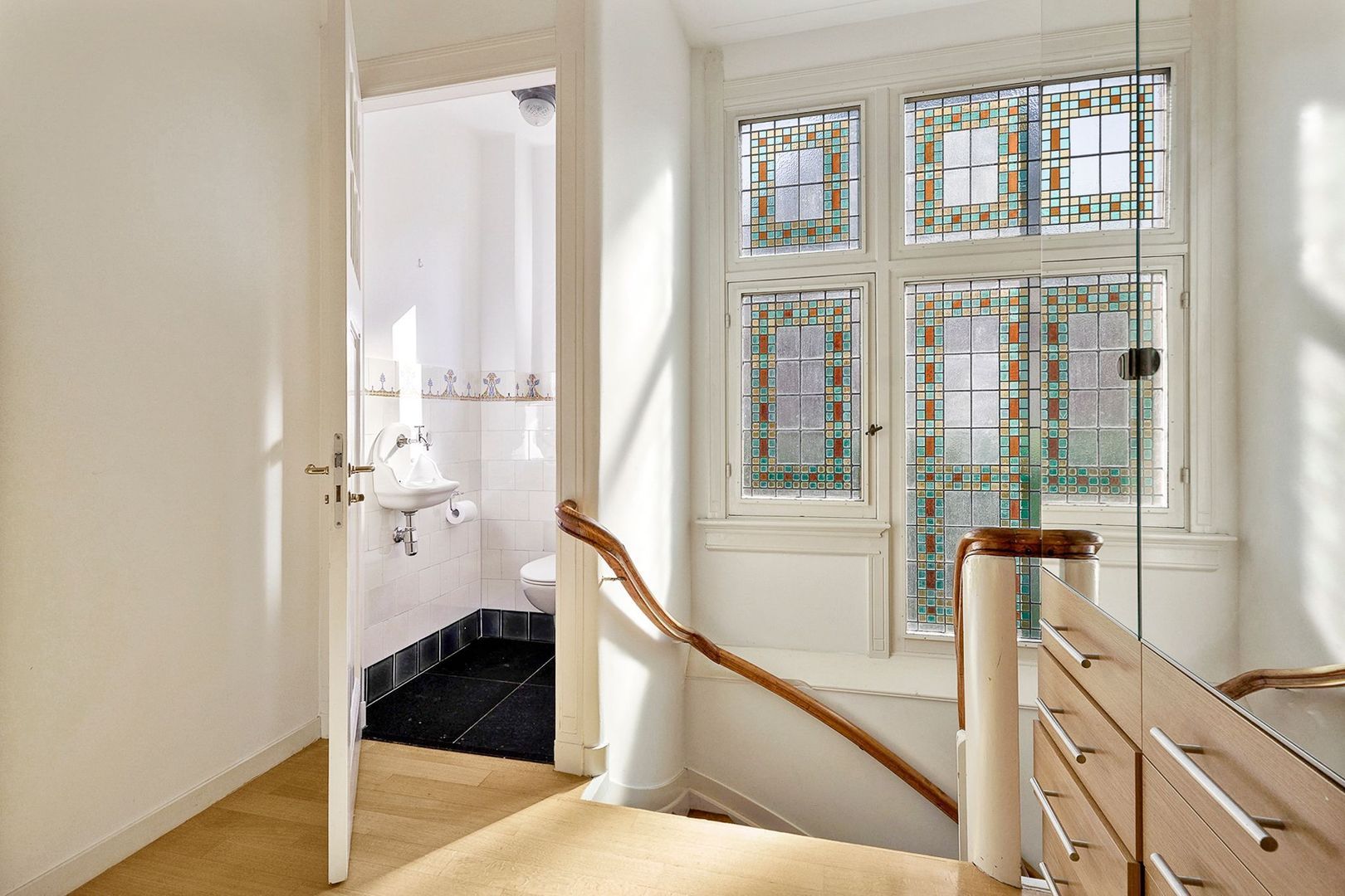 Via het brede houten trappenhuis met glas in lood vensters bereikt men de slaapverdieping. De ruime hal, voorzien van separaat toilet, verschaft toegang tot alle vertrekken. Op deze woonlaag bevinden zich vier slaapkamers van goed formaat. De hoofdslaapkamer is aan de voorzijde gelegen en beschikt over een fraaie erker. De tweede ruime slaapkamer is aan de achterzijde gesitueerd en heeft openslaande deuren naar een balkon met zicht op eigen tuin.