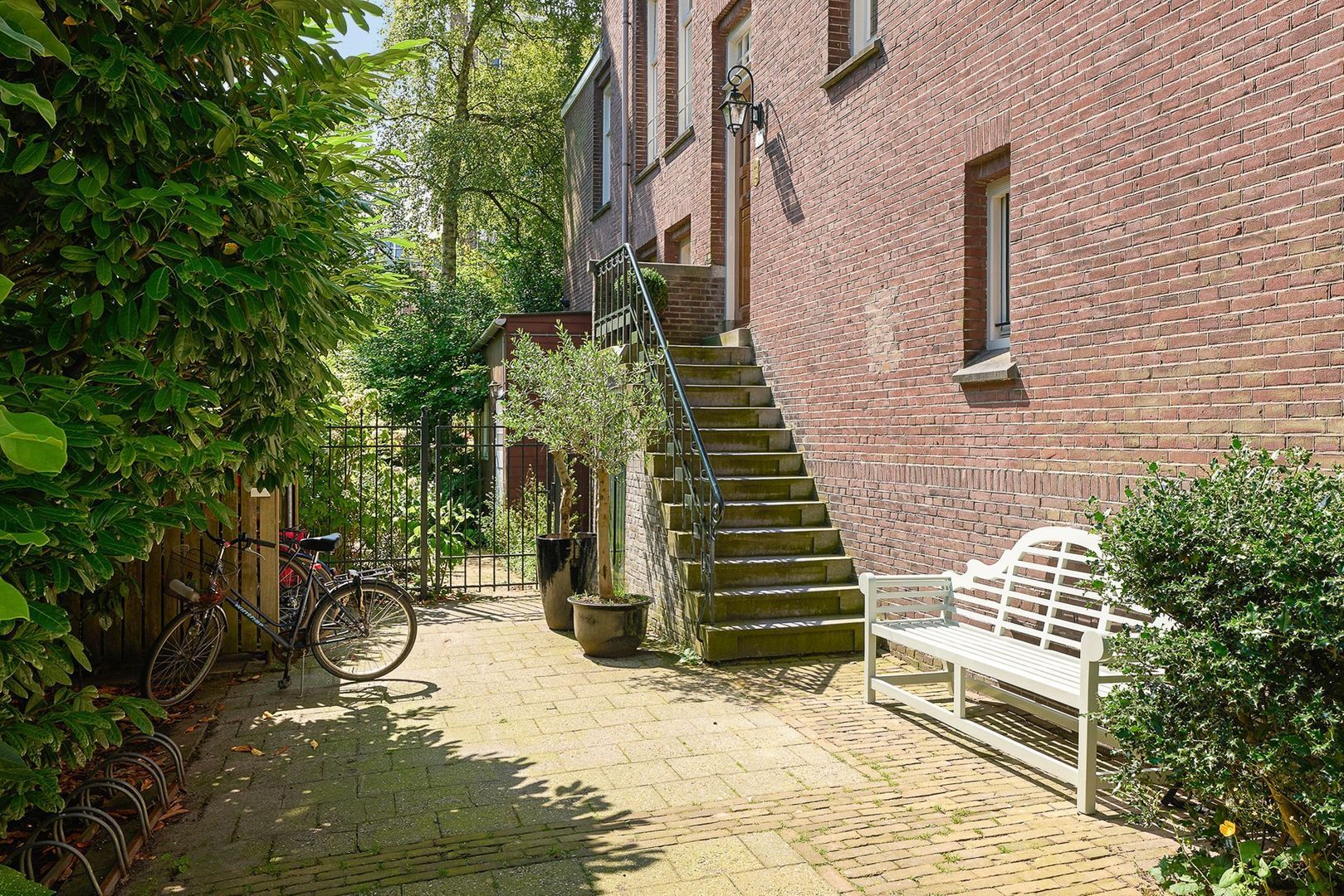 De tuin van totaal 270m² bevindt zich aan drie zijden van het huis waarbij de achtertuin op het zuiden is gelegen. De achtertuin is van meerdere niveaus voorzien wat een speelse uitstraling geeft en meerdere mogelijkheden biedt. Deze groene tuin is redelijk beschut gelegen en is recentelijk van een nieuw drainage systeem voorzien. Vanaf de straatzijde is, via het afsluitbare hek, de eigen zijtuin te bereiken. Deze reikt vanaf de stoep tot aan de achtertuin waarbij vermeld dat het open gedeelte tevens toebehoort tot het aangebodene (met recht van overpad voor de bovenburen).