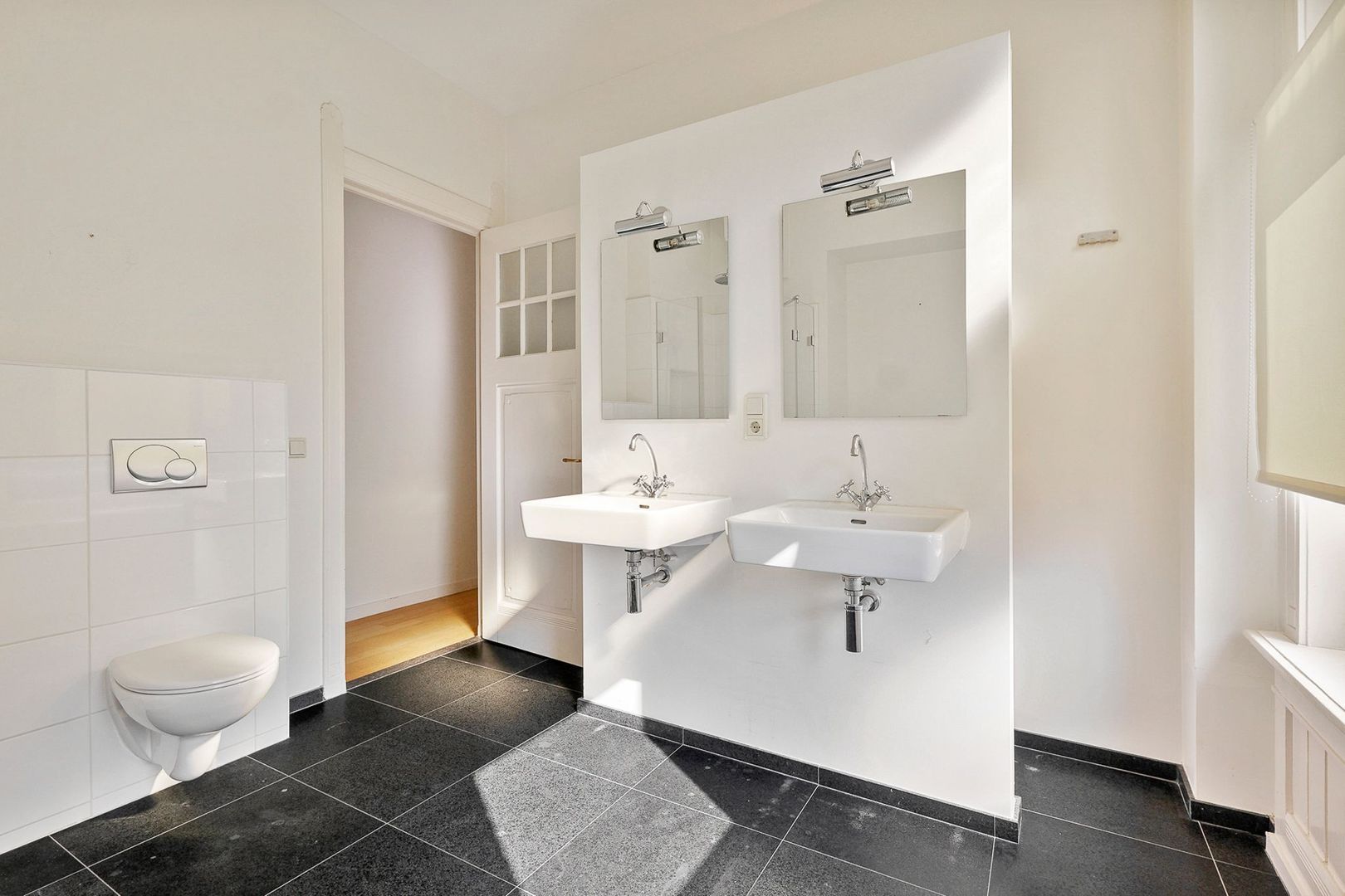 De eerste badkamer op deze verdieping is uitgevoerd met een antraciet tegelvloer en een witte wand. Voorts beschikt deze ruime badkamer over een ovaal ligbad, douchecabine, dubbele wastafel, toilet en een dubbele op maat gemaakte houten open badkamerkast. De tweede badkamer is uitgevoerd met een lichtgrijze vloertegel en een crème kleurige wand. Deze badkamer biedt een inloopdouche en een wastafel. Beide badkamers zijn voorzien van vloerverwarming.