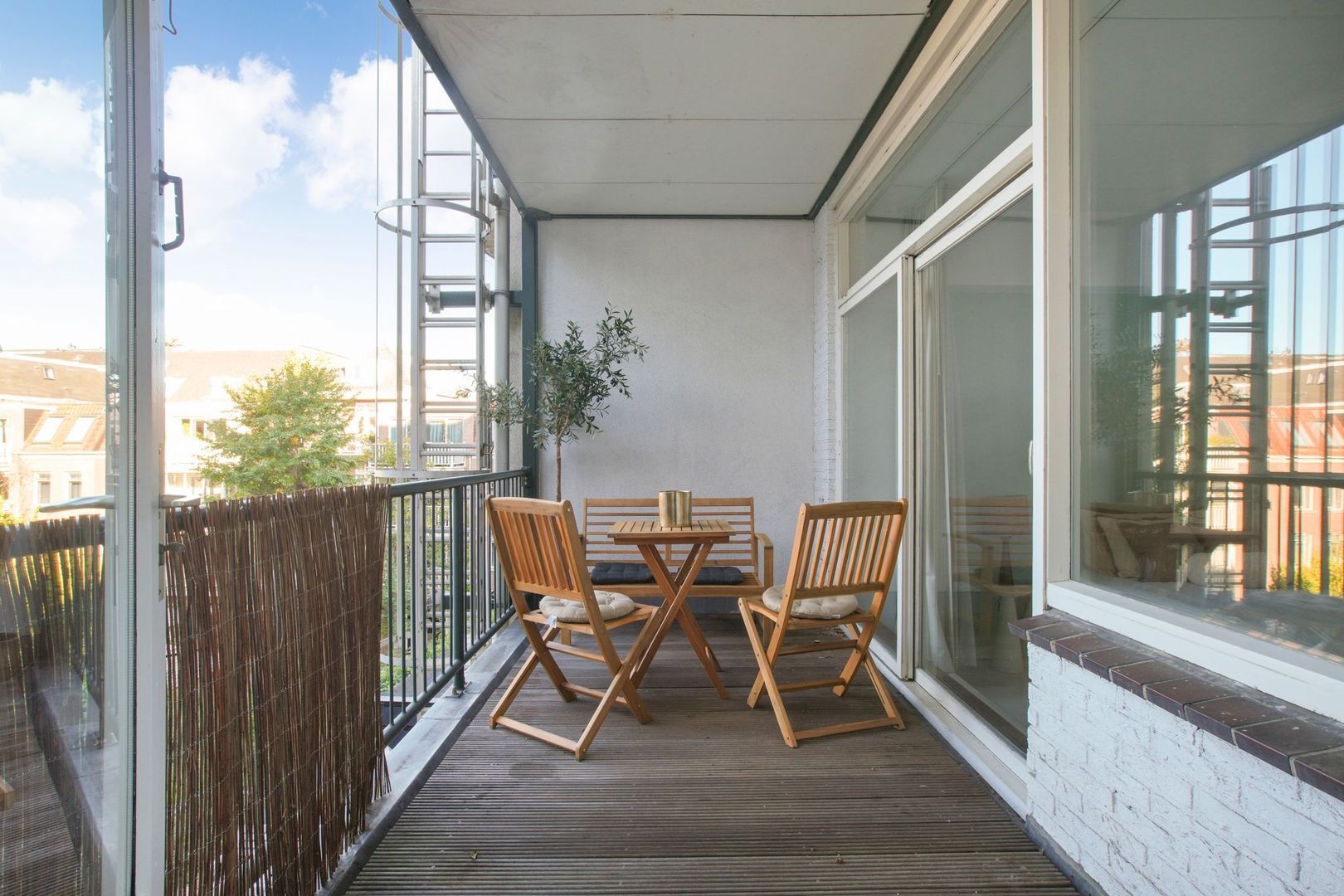 Aan de achterzijde zijn de twee slaapkamers gesitueerd, beide met toegang tot het aangename terras op het zuidwesten. De rechterslaapkamer beschikt over een hoge inbouwkledingkastenwand en een brede schuifpui naar het terras. De linkerslaapkamer, met niveauverschil, is onder verdeeld in een hoger gelegen slaapgedeelte en een lager gelegen kastengedeelte. Hier bevindt zich tevens de meterkast. Het zonnige terras van ruim 18m² is geheel voorzien van hardhouten terrasdelen en biedt een rustige zit in dit bruisende deel van de stad.
