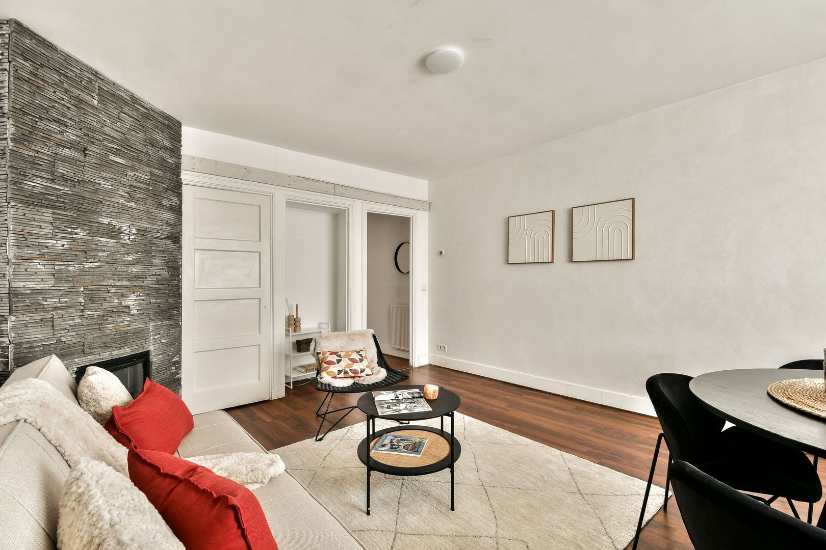 Aan de voorzijde is de charmante woonkamer gelegen met fantastisch zicht over de Schinkel. Met de geboden oppervlakte is hier plaats voor zowel een zit- als eetgedeelte. Tevens beschikt de woonkamer over twee goede inbouwkasten en een elegant betegelde wand met een inbouwhaard.