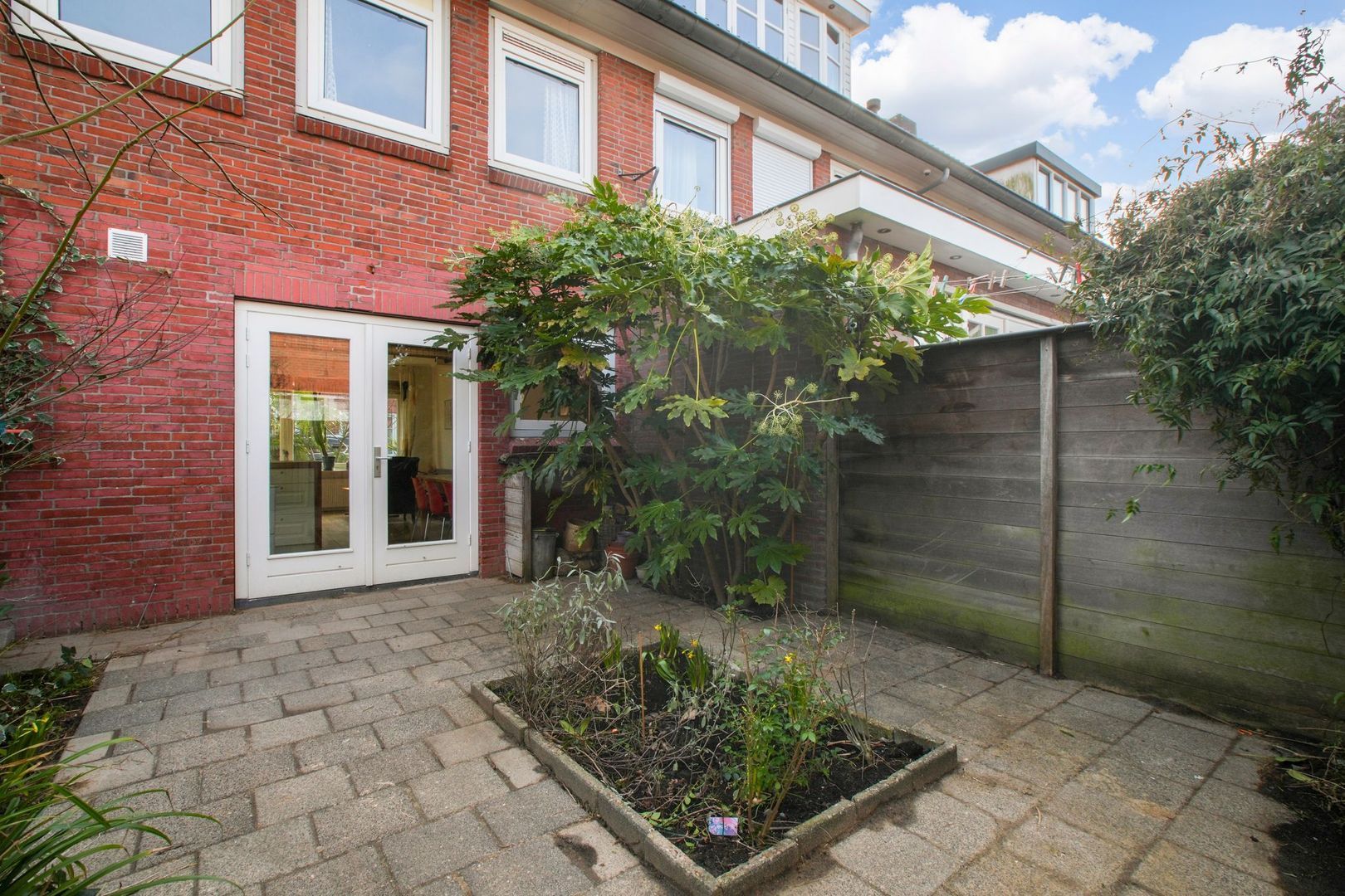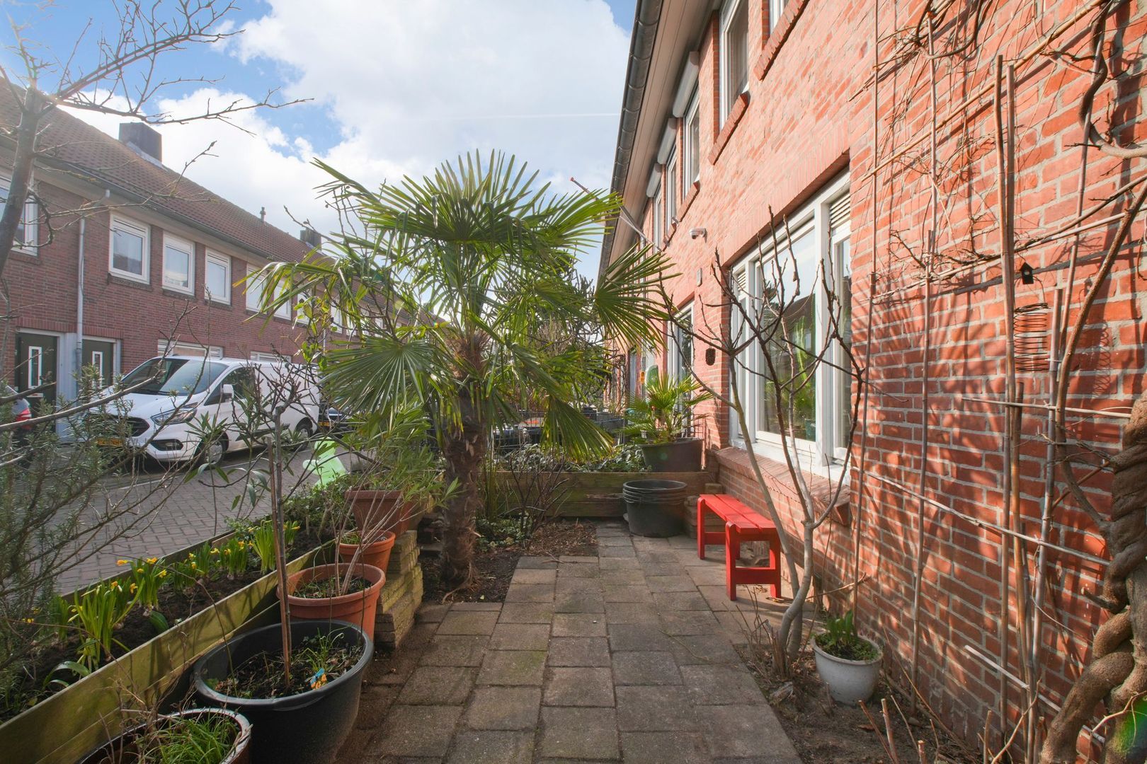 Via de openslaande deuren bereik je de royale achtertuin van 54m². De tuin is verzorgd aangelegd met een combinatie van betegeling en groen, waardoor er ruimte is voor zowel een lounge- als eetgedeelte. Achterin de tuin staat een schuur en via de achterom bereik je eenvoudig weer de voorzijde van de woning. Een bijzonder detail is de aanwezige Japanse vingerplant (Fatsia Japonica), die zorgt voor sfeer en karakter.