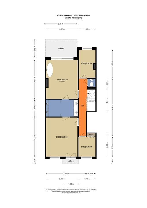 Woning verdeeld over 3 volwaardige verdiepingen;