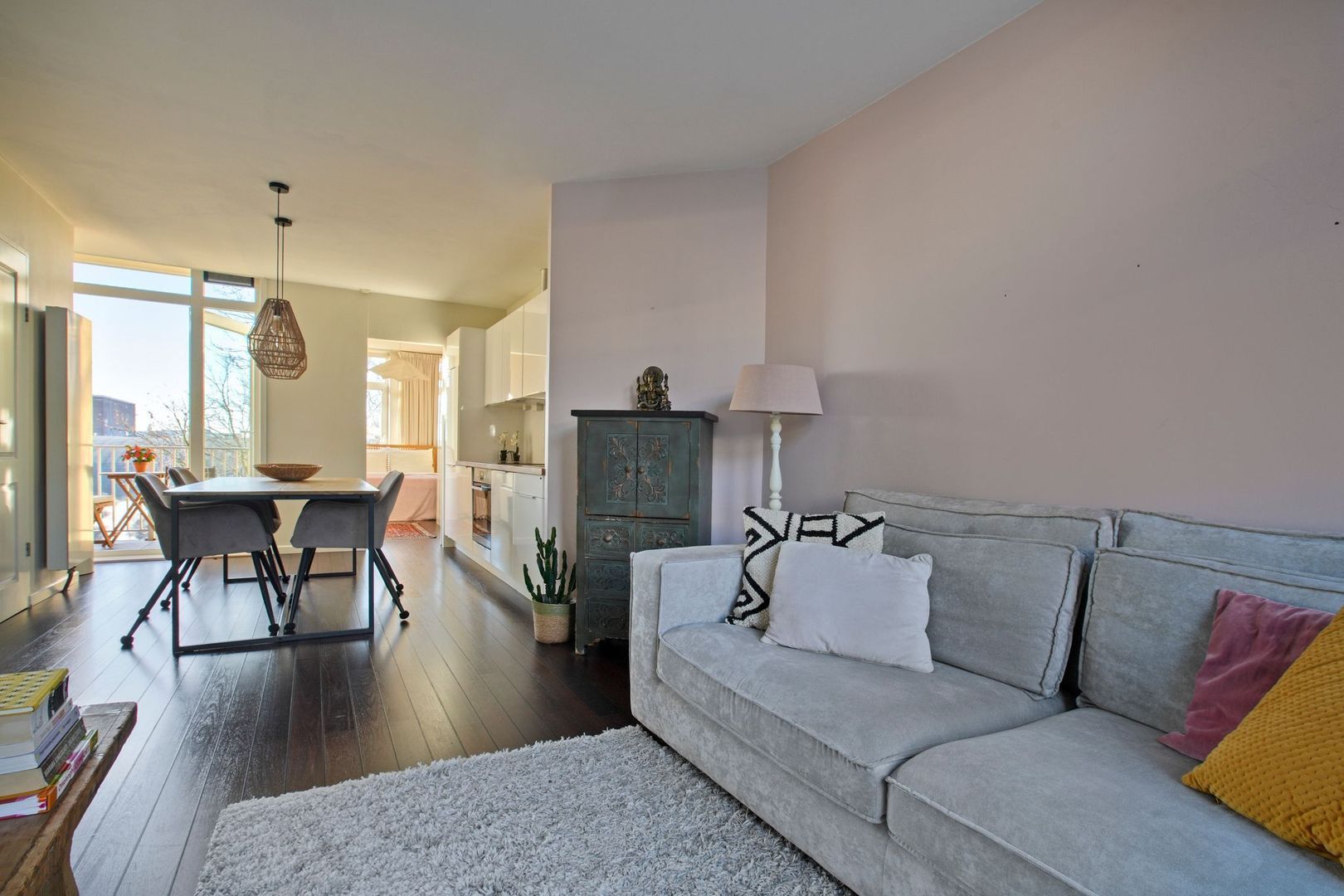 - Woonkamer met open keuken en balkon op het zuidwesten;
