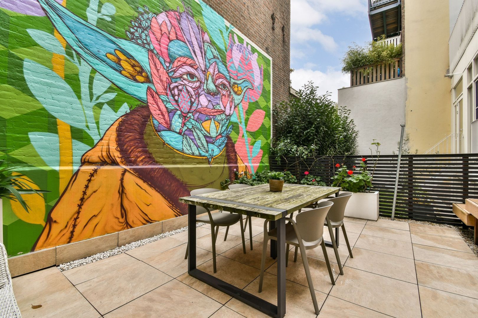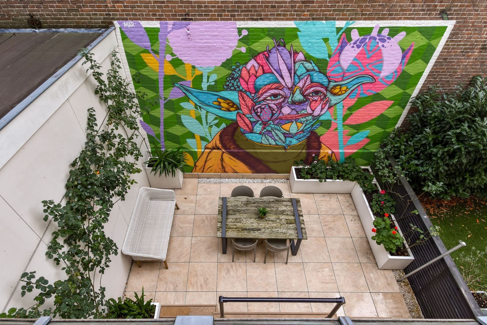 In 2022 zijn de veranda en tuin volledig vernieuwd. Hierbij is onder meer de hoge buitenmuur geïsoleerd en verstevigd, wat zorgt voor uitstekende warmtebehoud, geluidsisolatie en privacy. De veranda is opnieuw bekleed, de tuin voorzien van nieuwe terrastegels en er is een Franse drainage aangelegd — een stijlvolle en duurzame vernieuwing die het buitenleven optimaal tot zijn recht laat komen.