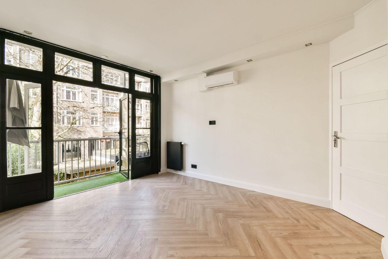 Heerlijk licht, modern en ruim opgezet tweekamerappartement van 54m² met een fraaie erker en een prettig balkon aan de achterzijde. Dit fijne appartement is gelegen op de eerste verdieping van een recentelijk gesplitst pand uit 1934 en ligt op erfpachtgrond. De woning beschikt over een sfeervolle living met open keuken, een ruime slaapkamer met airco, een goede badkamer en een rustig balkon aan de achterzijde. Indien gewenst is het mogelijk een extra slaapkamer te realiseren aan de voorzijde. Het gehele appartement is uitgevoerd met een fraaie houten vloer, witte wanden en plafonds, inbouwverlichting en kozijnen met dubbele beglazing.
