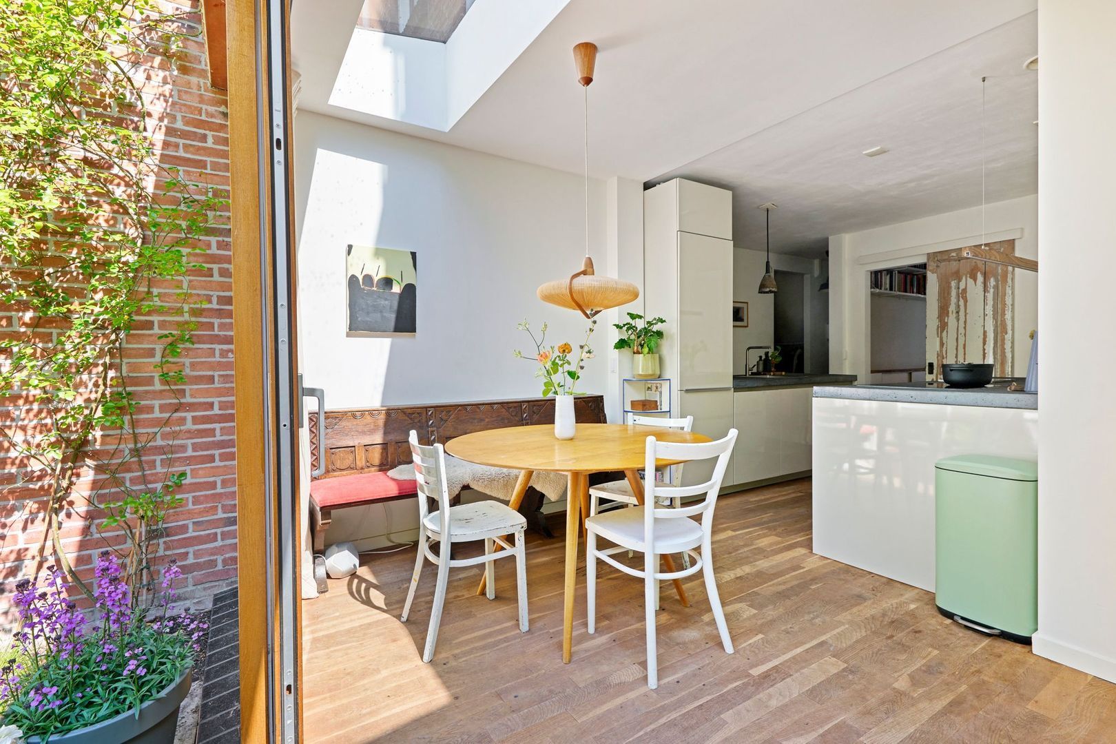 Het gehele appartement is uitgevoerd met een mooie houten vloer en kozijnen met dubbele beglazing. De lichtstraat heeft triple glas.