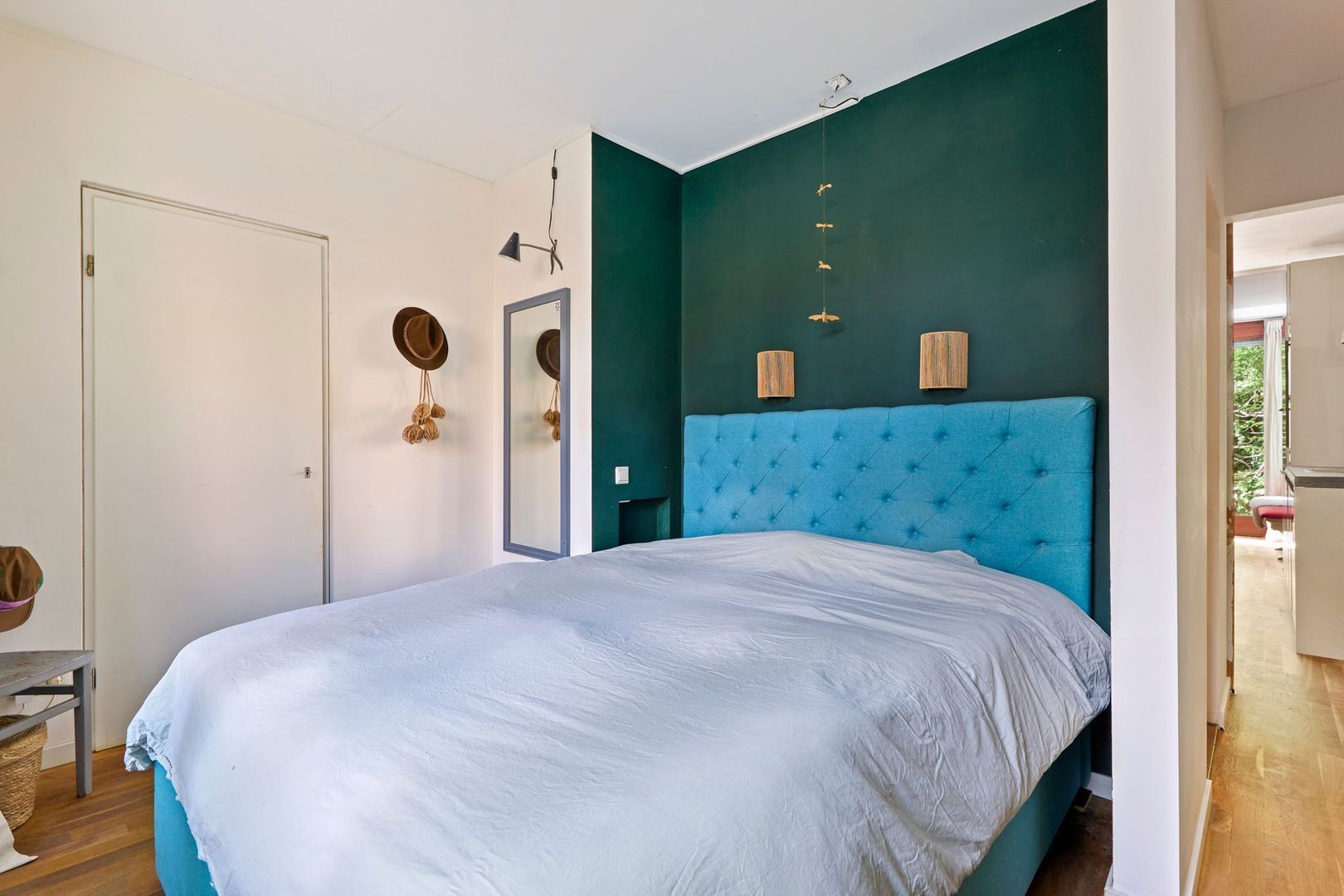 De tweede slaapkamer is vanuit de zitkamer te bereiken en grenst aan de zijkant van de tuin. De derde en laatste slaapkamer is geheel aan de achterzijde gelegen en biedt tevens toegang tot de achtertuin.