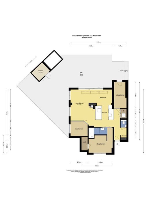 De uitbouw die in de woonkamer is gerealiseerd heeft een brede lichtstraat die de woning ook nog van extra daglicht voorziet. Het pand is rustig gelegen in de bruisende Cornelis Troostbuurt met alle voorzieningen op loopafstand. De woning ligt aan het eind van een doodlopende autoluwe straat, met een speeltuintje voor de deur. De erfpacht voor deze woning is eeuwigdurend afgekocht.