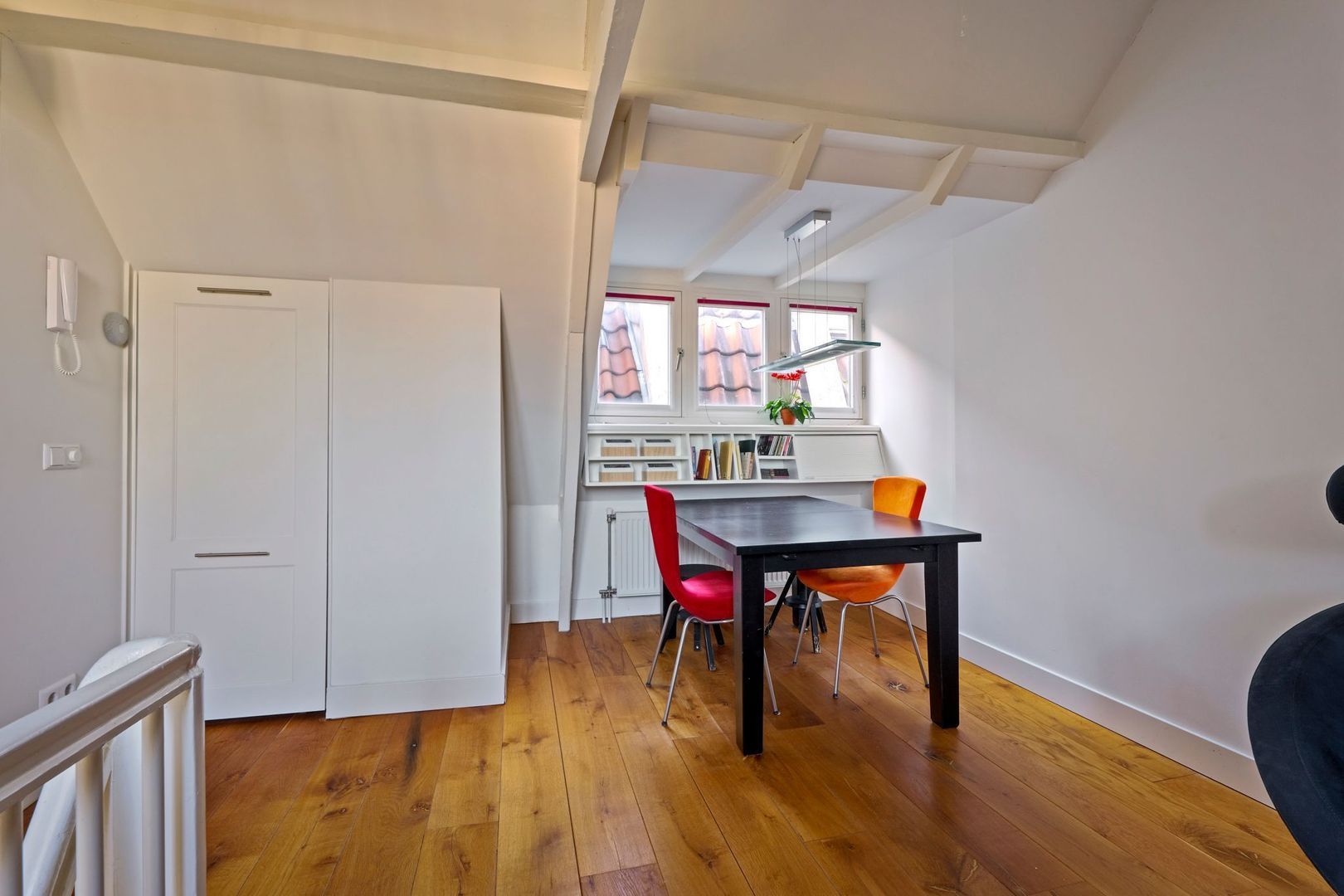 De woning ligt op de vierde (tevens bovenste) verdieping van een goed onderhouden pand uit 1901 aan de rand van de bruisende Jordaan.